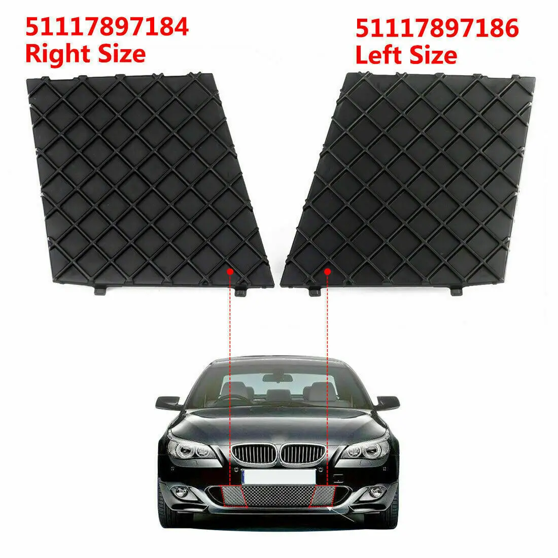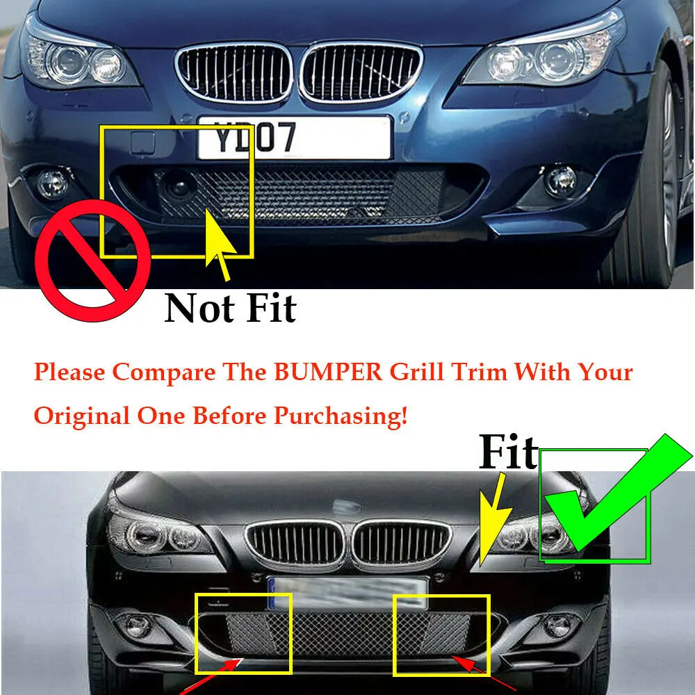 Black Left+Right Car Front Bumper Lower Mesh Grill Plate Trim Cover For BMW E60 E61 M Sport 51117897186 51117897184 Bumper Cover