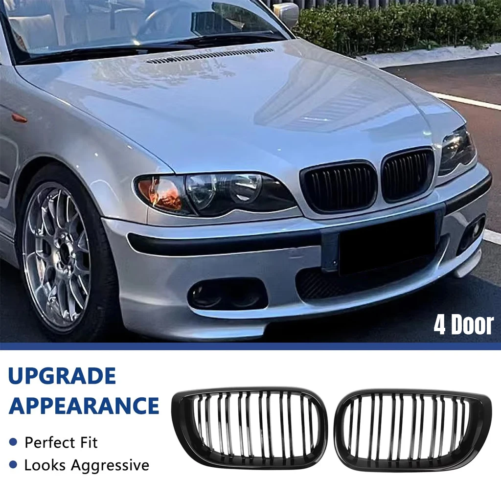 For BMW E46 2/4 Door 3 Series 2002 2003 2004 2005 318i 320i 325i 330i Grille Glossy Black Front Kidney Double Slat Grill Tuning