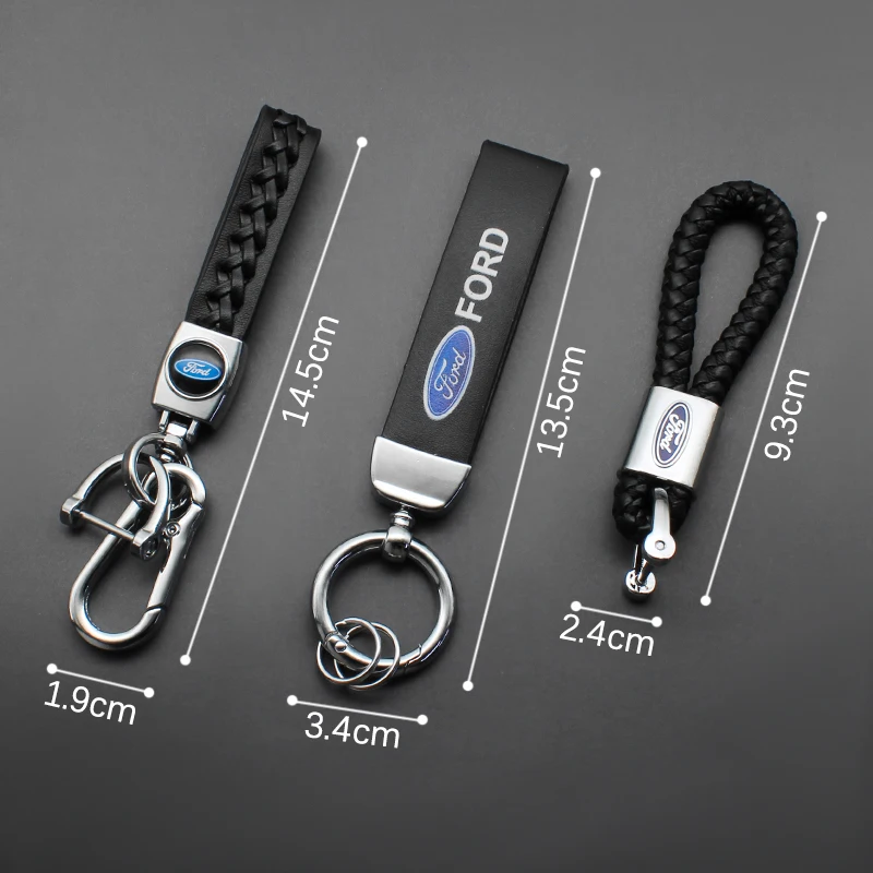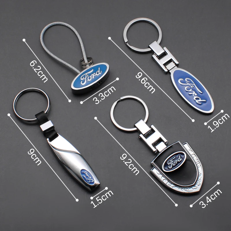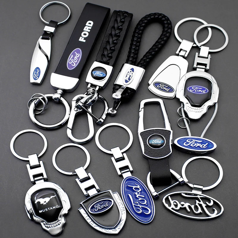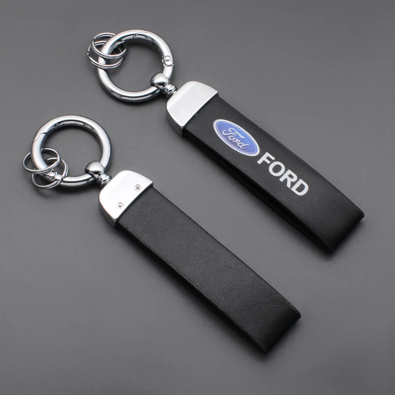 3D Metal Car Keychain For Ford Focus Fiesta Mondeo Explorer Transit Escape Puma Kuga MK2 PU Leather Emblem Key Ring Accessories