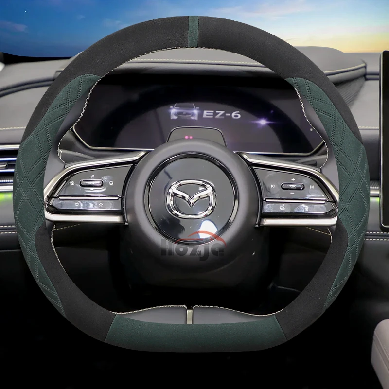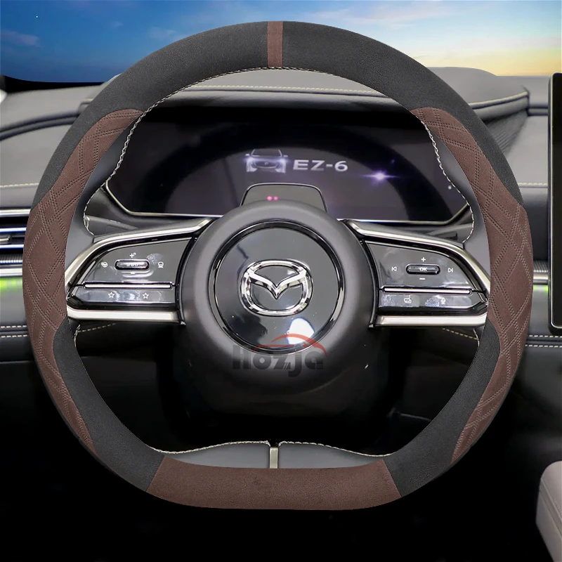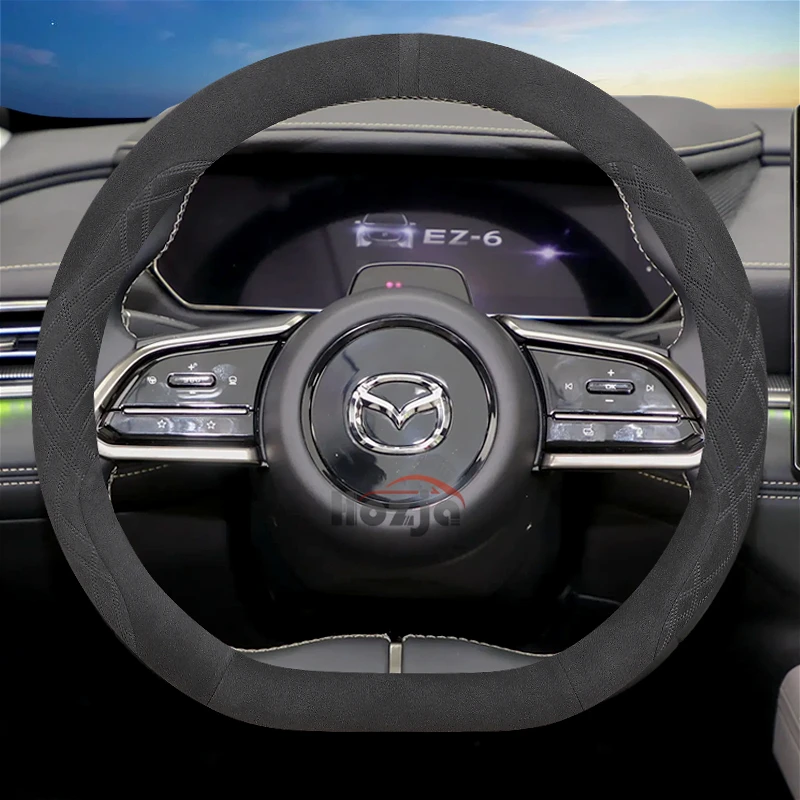 Suede Leather Car Steering Wheel Cover for Mazda EZ6 2024 2025 6e 2026 Car-styling Auto Accessories