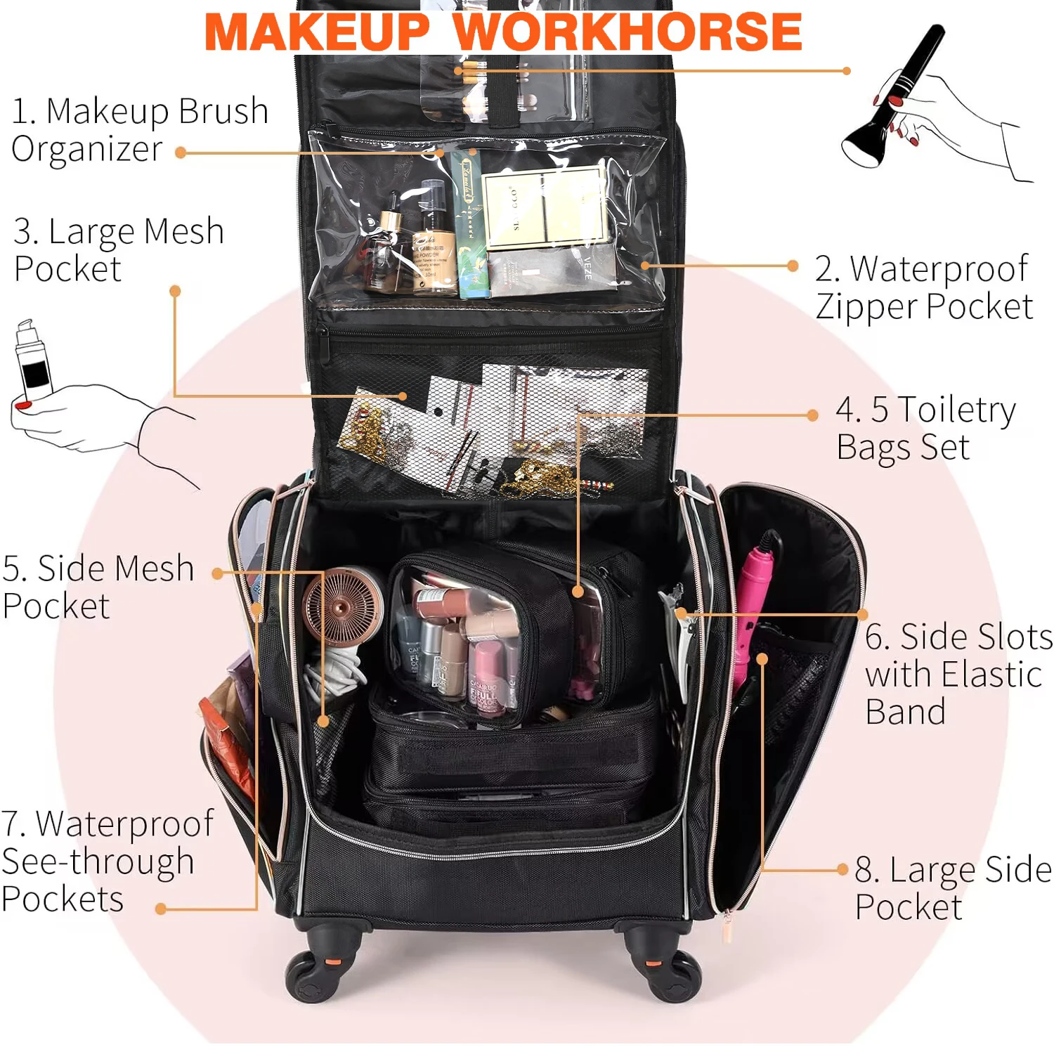 Draw Bar Box Makeup Artist Manicure Hairdresser Barber Suitcase Canvas Beauty Case Storage High-capacityTrolley Case Tools
