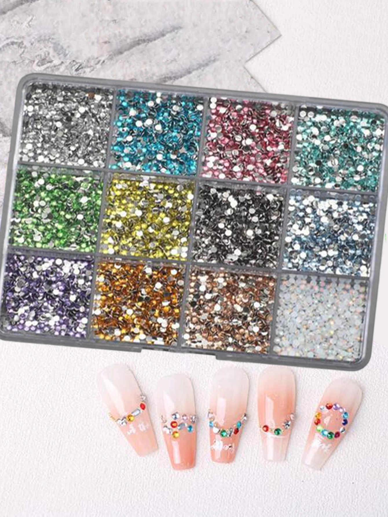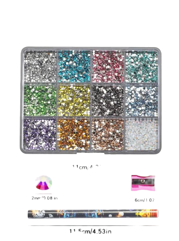 12Grids(6000pc) 3D Resin Nail Art Rhinestones+Tools 2mm Brilliant Diamond Nail Charms DIY Clothes Phone Case Manicure Accessory