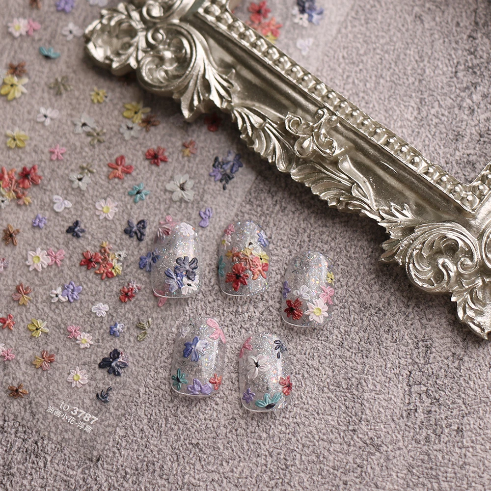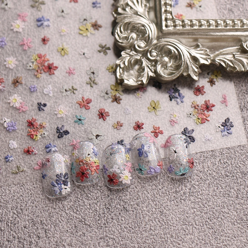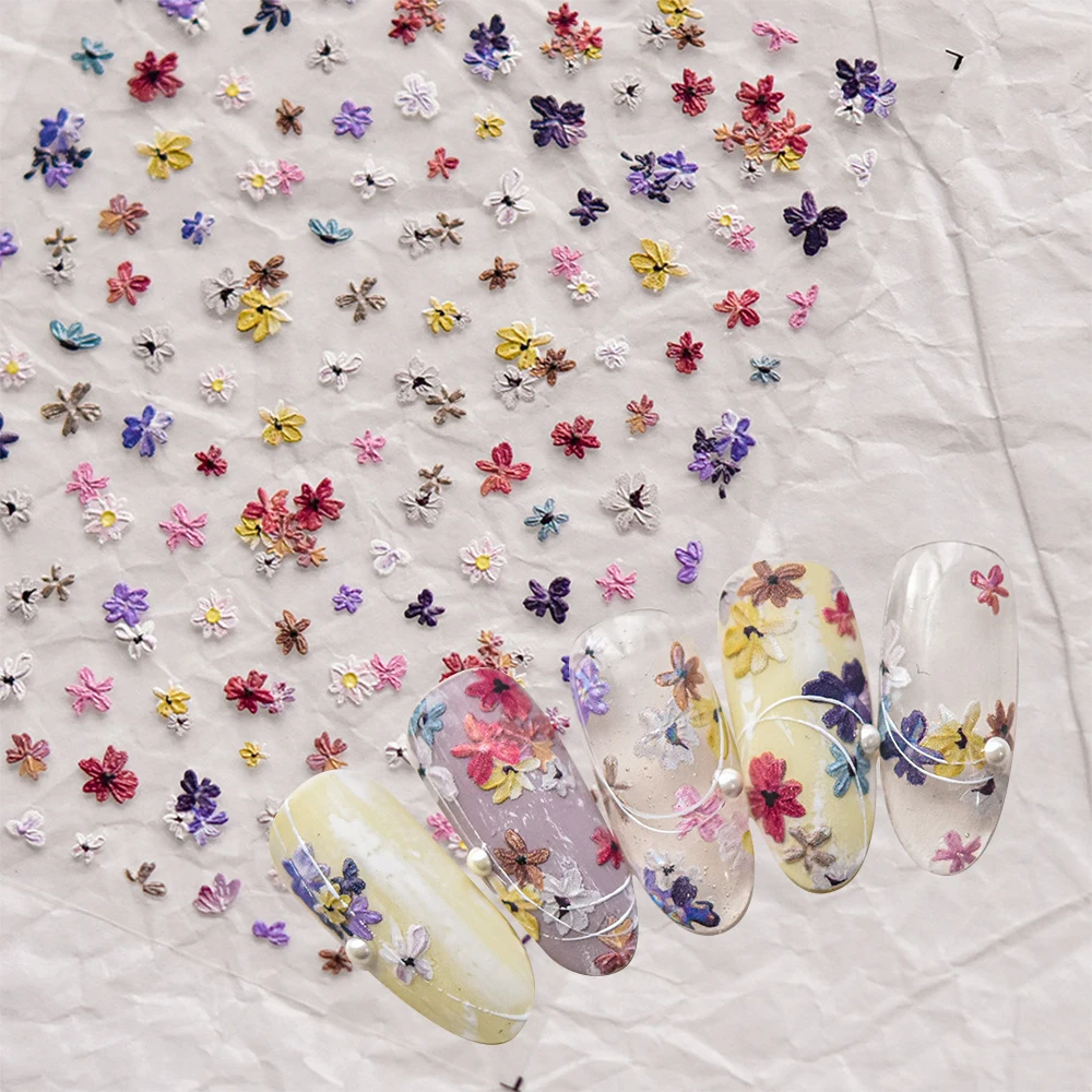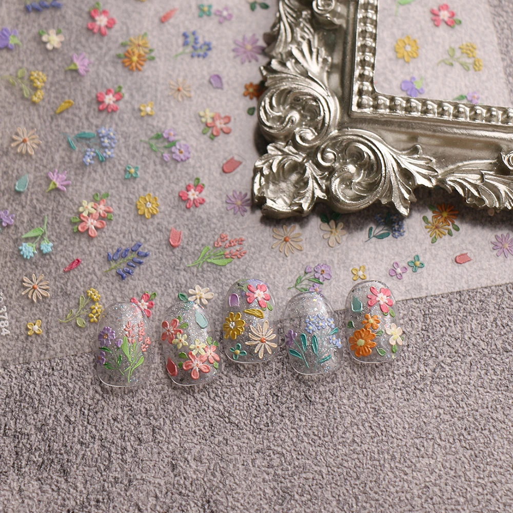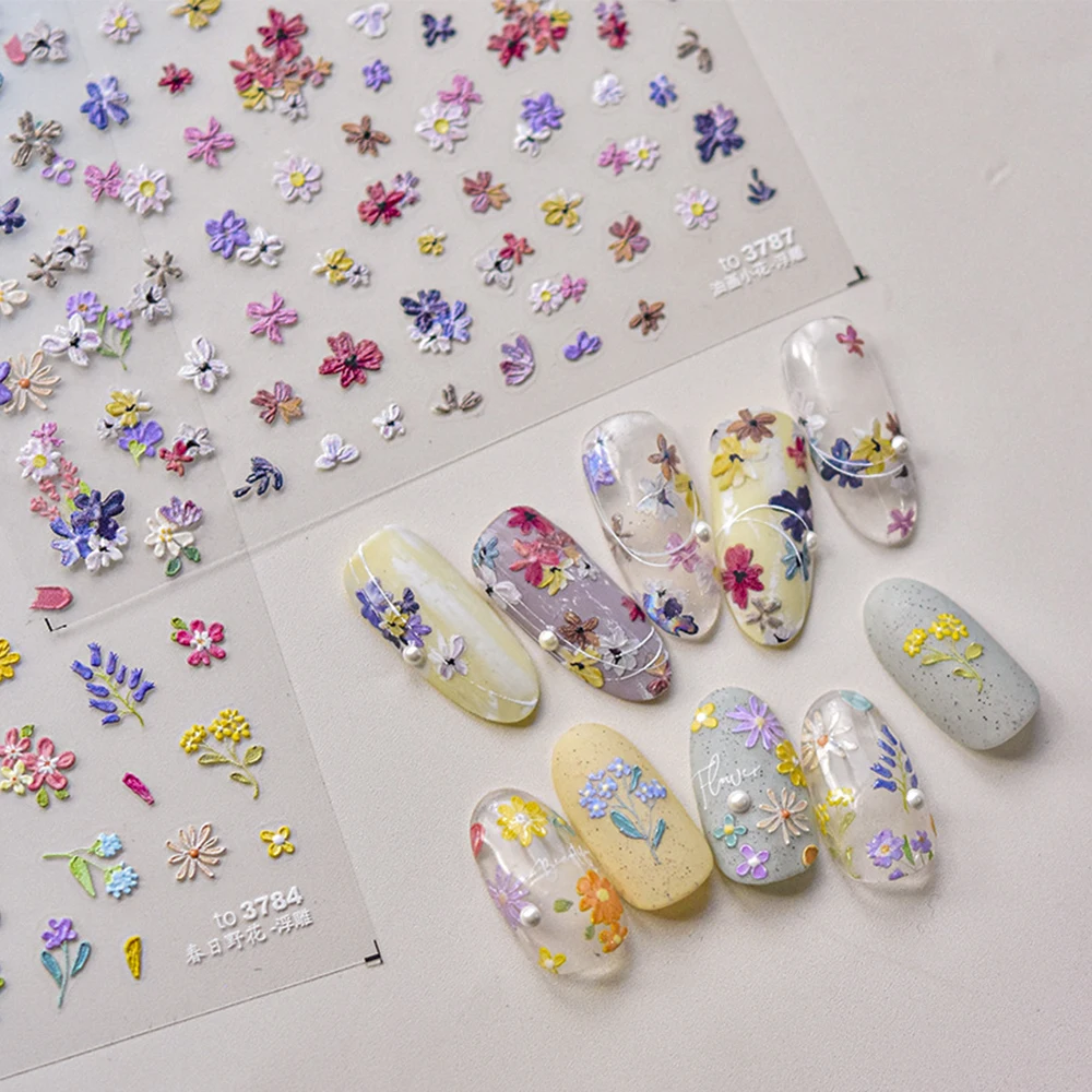 1/2pcs Embossed 5D Florals Nail Art Stickers Spring Summer Wild Flowers Leaf Petals Adhesive Nail Decals DIY Manicure Supplies