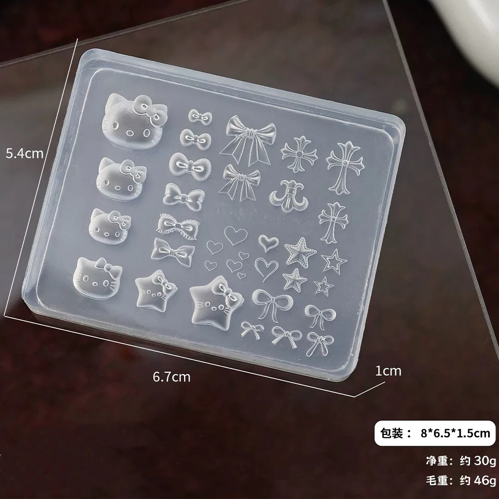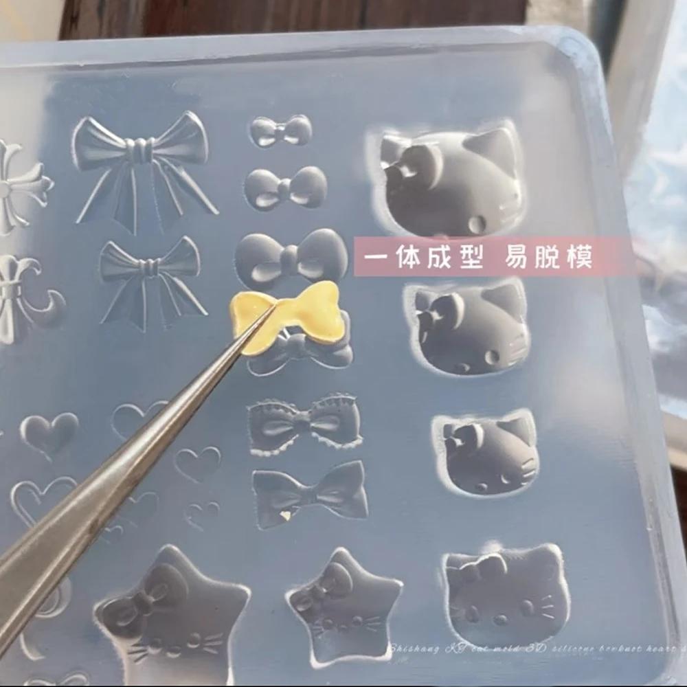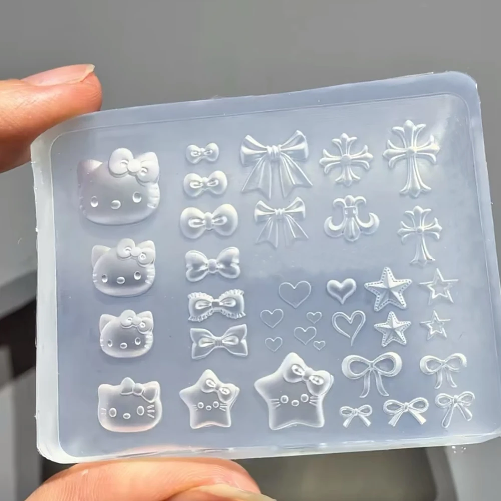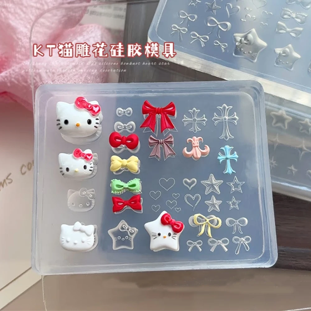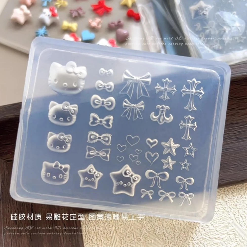 3D Kawaii Cartoon Hello Kitty Nail Carving Mold Sticker Silicone Nail Art Mold Heart Bowknot Cross Nails Stencils Decals for DIY