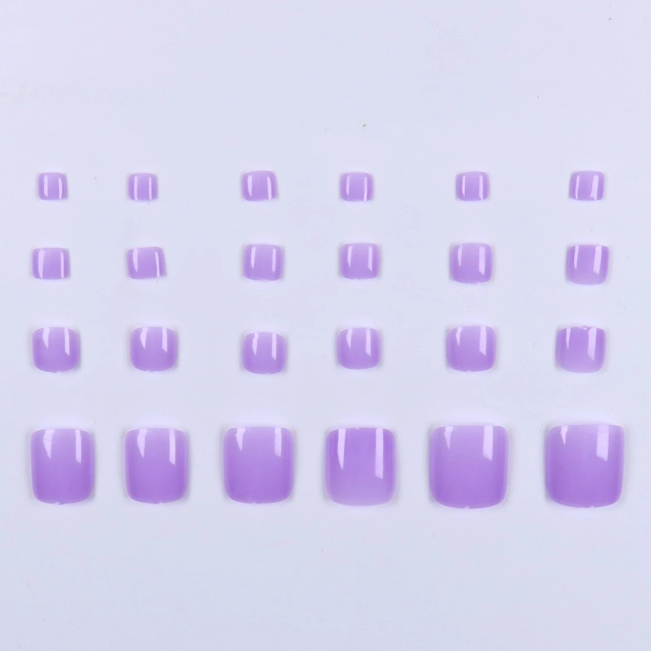 48PCS Press Type Nail, Medium Size Square And Press Type Nail, Purple French Pointed Fake Nail, Fully Covered Nail, Purple Toena