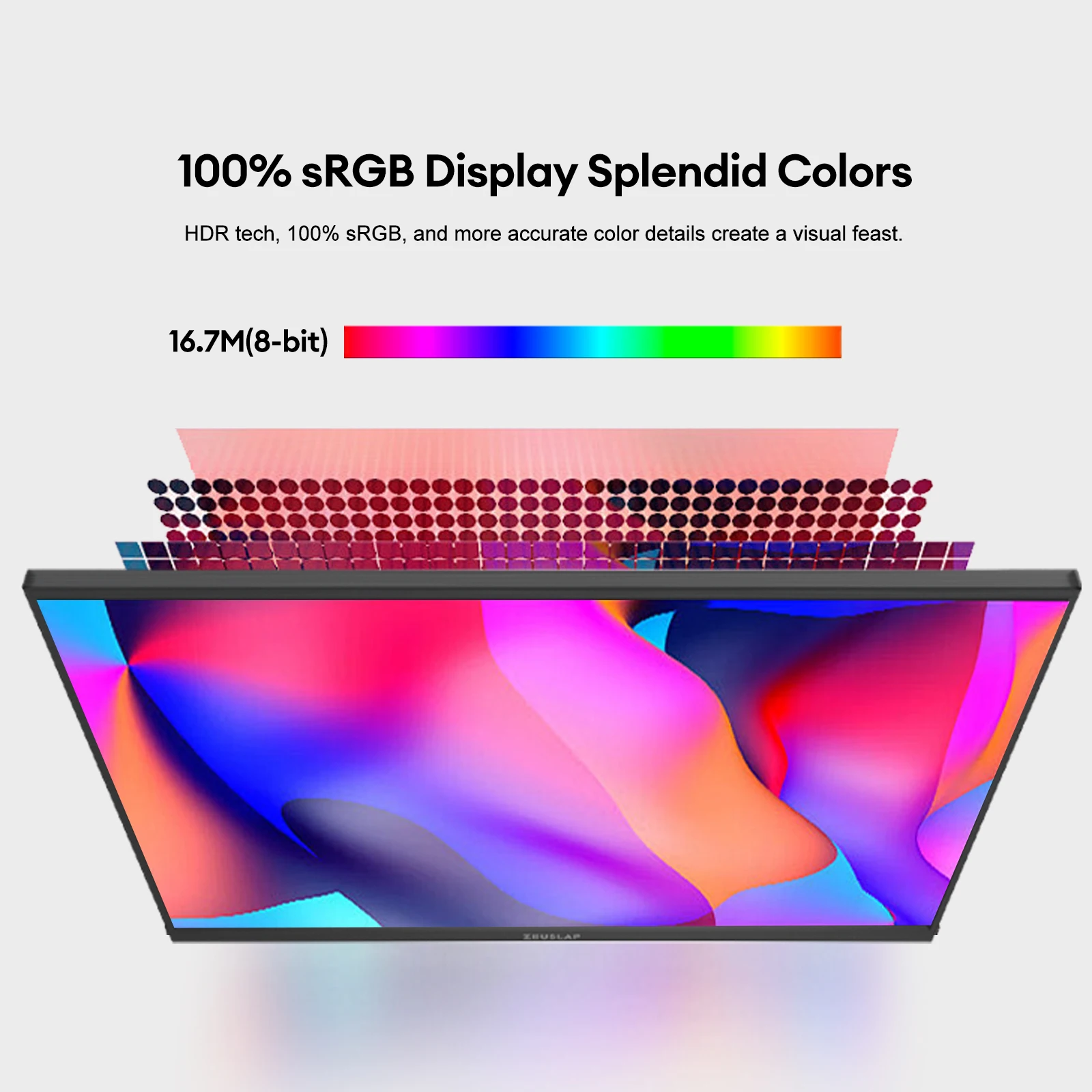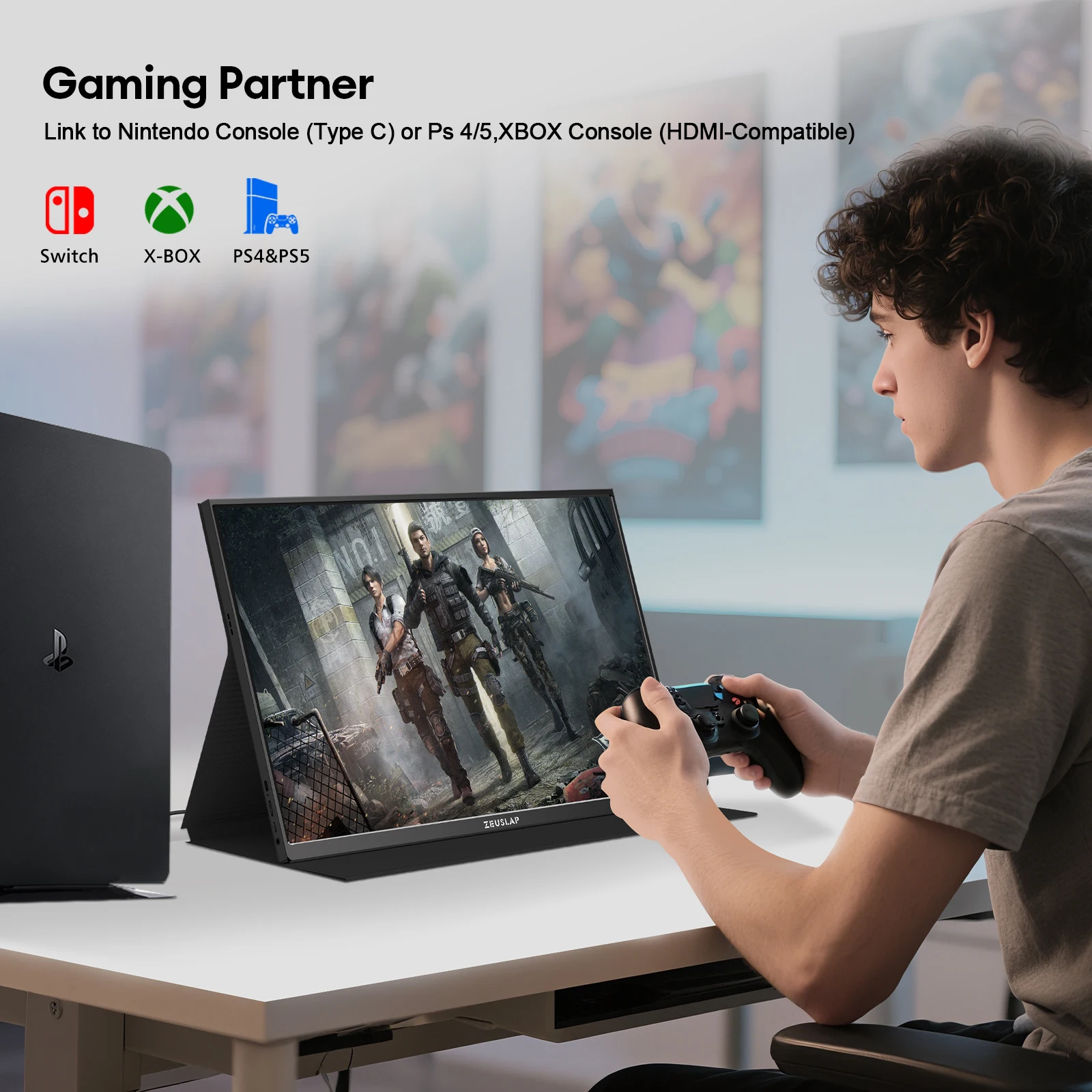 ZEUSLAP 16" Portable Monitor 100%sRGB 1200P IPS Screen Travel Gaming Computer Display for Steam Deck Laptop Switch PS4 PS5 Xbox