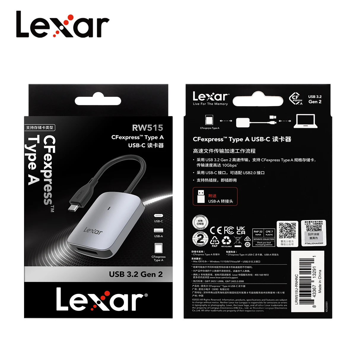 Original Lexar RW515 Professional USB 3.2 Gen 2 Type C CFexpress Type A Card Reader Support CFe A Card