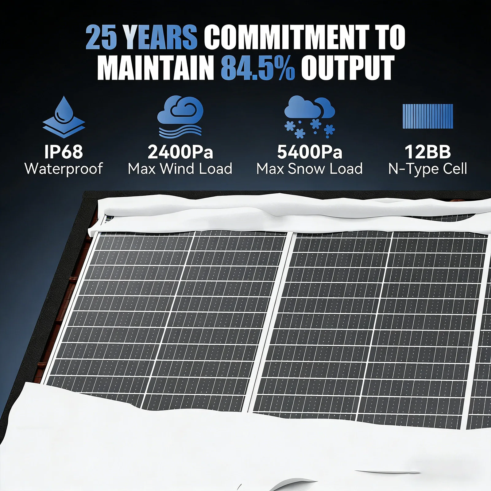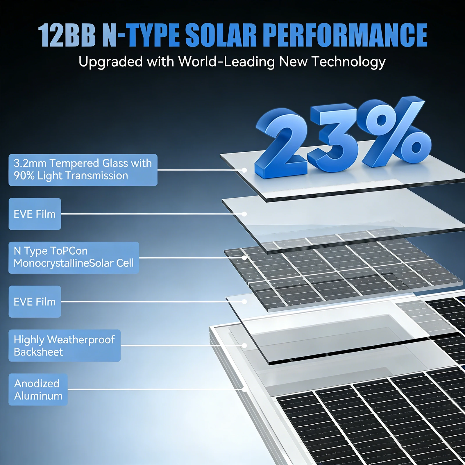 Monocrystalline silicon, 24% module efficiency for high performance.