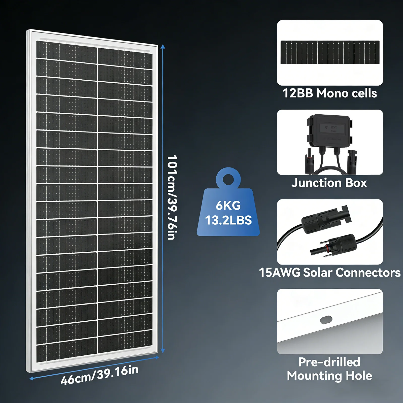 RVPOZWER 100W 12V 12BB Solar Cell Monocrystalline Solar Panel High Efficiency Solar Module Charge Battery for RV Trailer