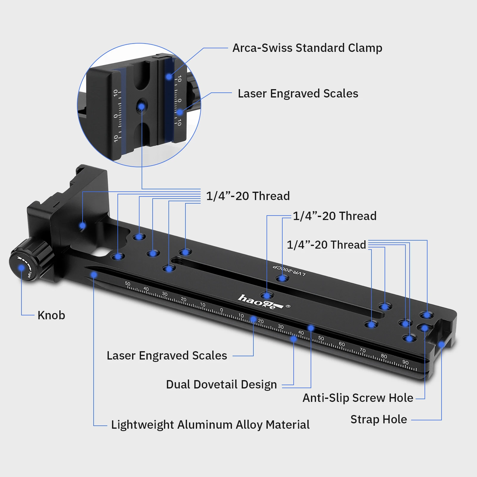 Haoge 200mm Dual Dovetails Nodal Slide Vertical Rail with 90 Degree Quick Release Clamp Compatible with Arca-Swiss SUNWAYFOTO
