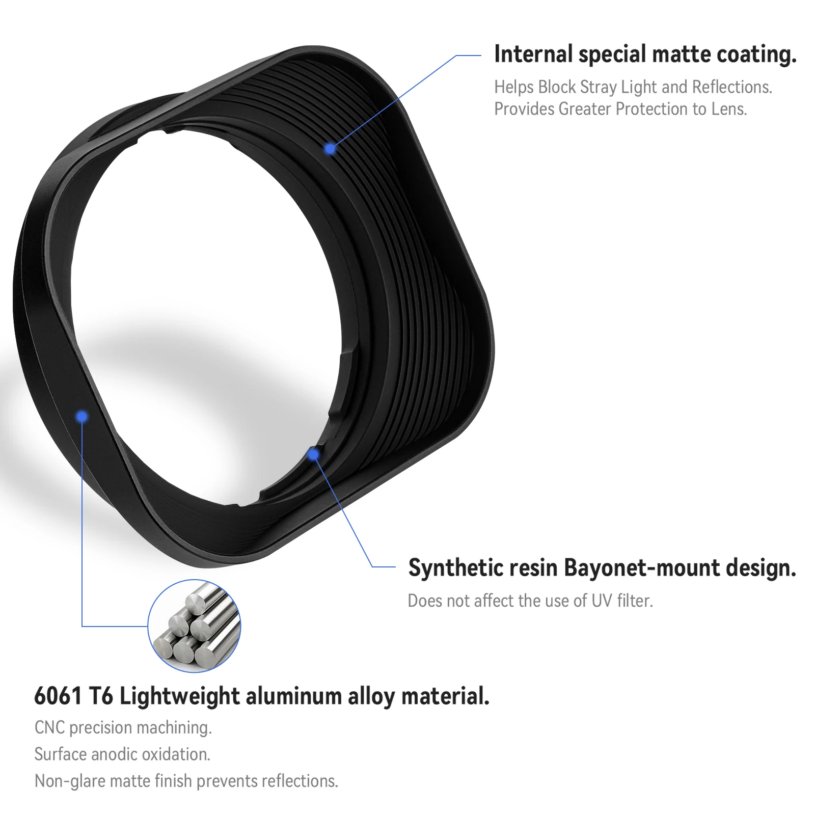 Haoge LH-P15 Square Metal Lens Hood for Panasonic Leica DG SUMMILUX 15mm f/1.7 ASPH Lens 15MM F1.7