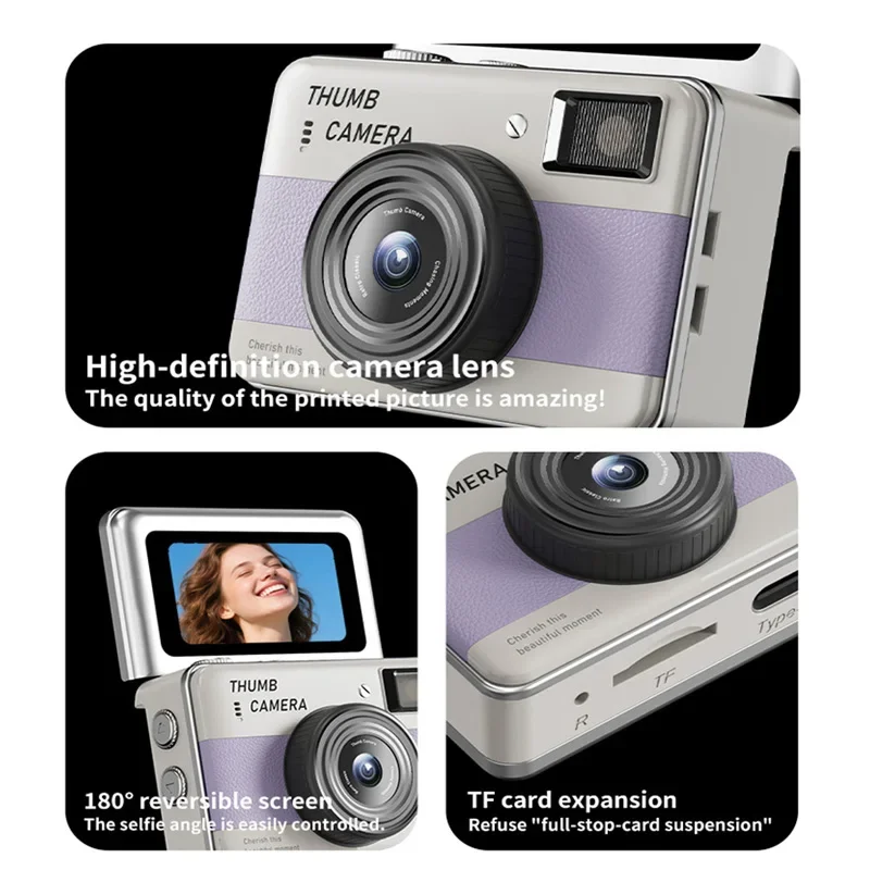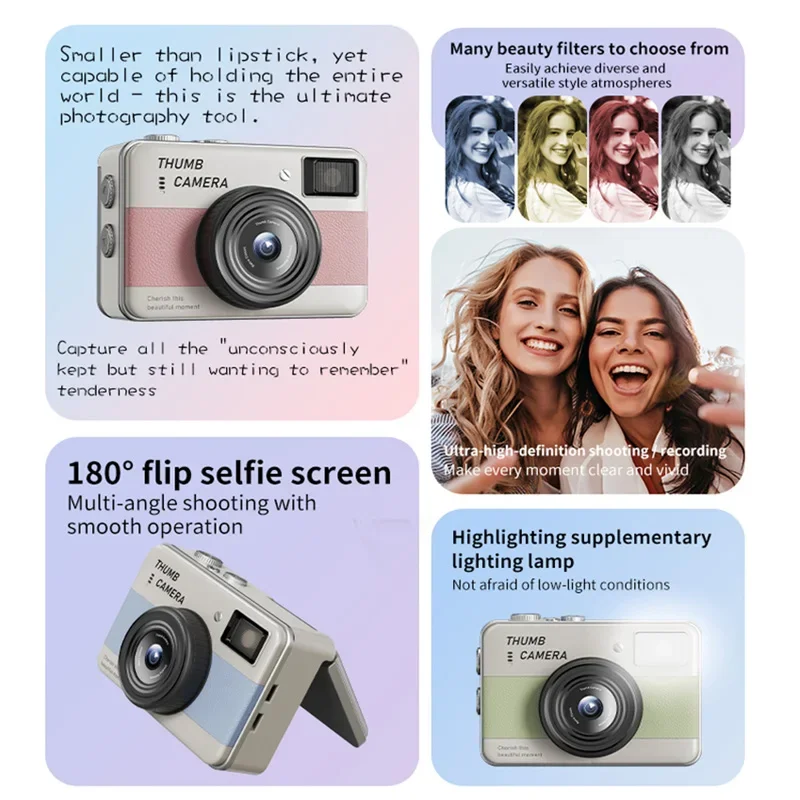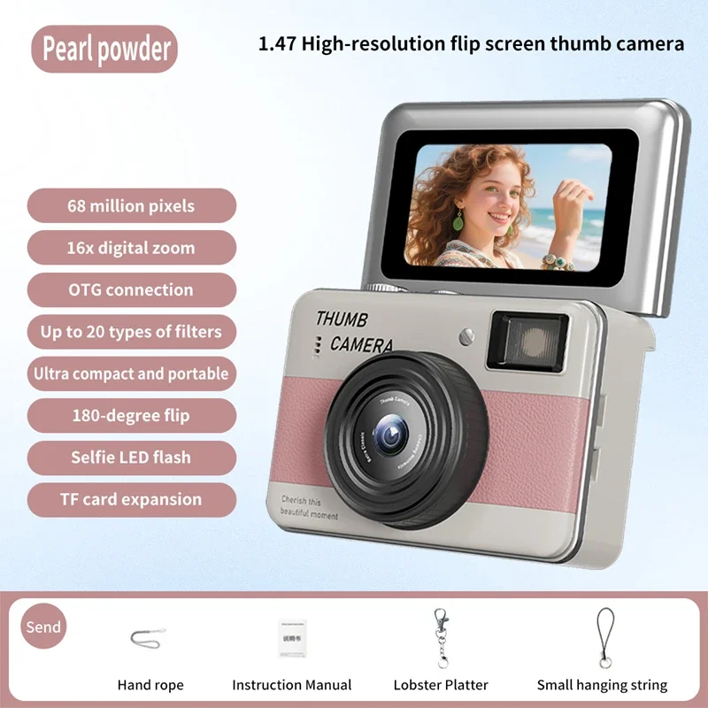 Lenovo 4K CCD HD Camera One-Touch Photo Mini Camera Thumb-Sized Camera Flip-Cover Design Student-Friendly Portable Companion