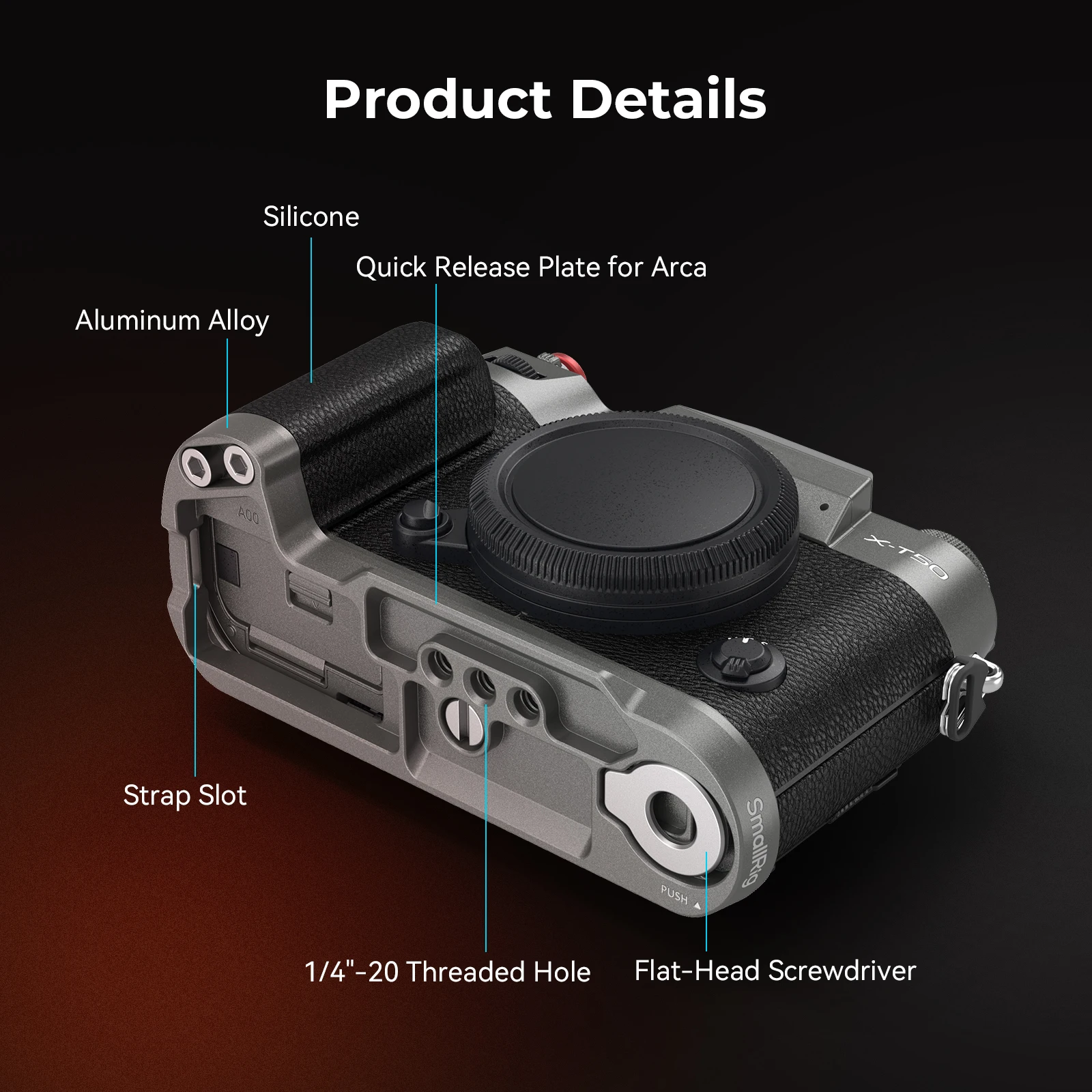 SmallRig X-T50 L-Shape Mount Plate with Silicone Handle for FUJIFILM X-T50 with Arca-Swiss quick release plate -4712