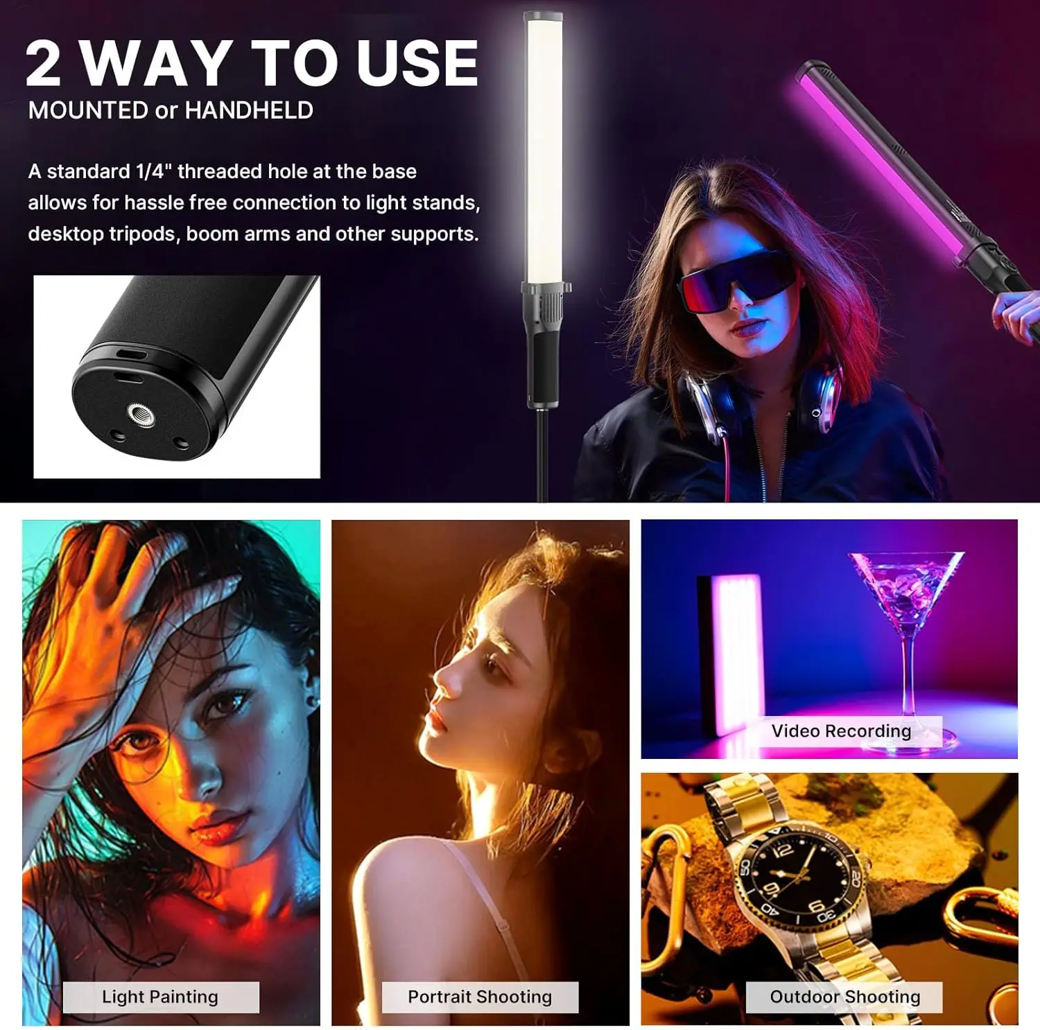 ULANZI VL360 38W RGB Handheld Light Wand LED Video Fill Light Stick with Barndoor 360°Full Color 2500K-10000K Tube Lighting