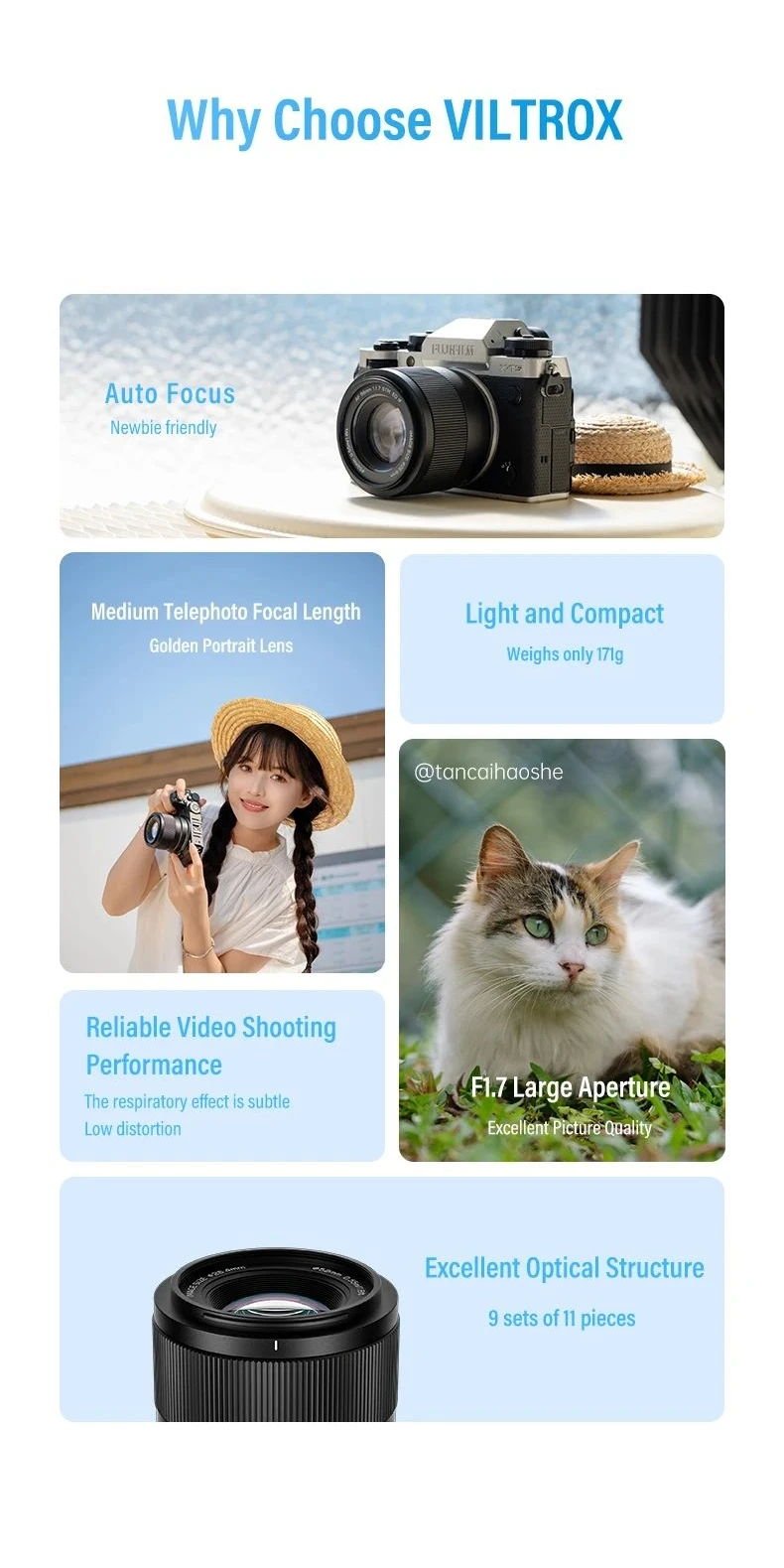Viltrox 56mm F1.7 Auto Focus APS-C Lens for Fuji X Nikon Z Sony E Mount Mirrorless Cameras