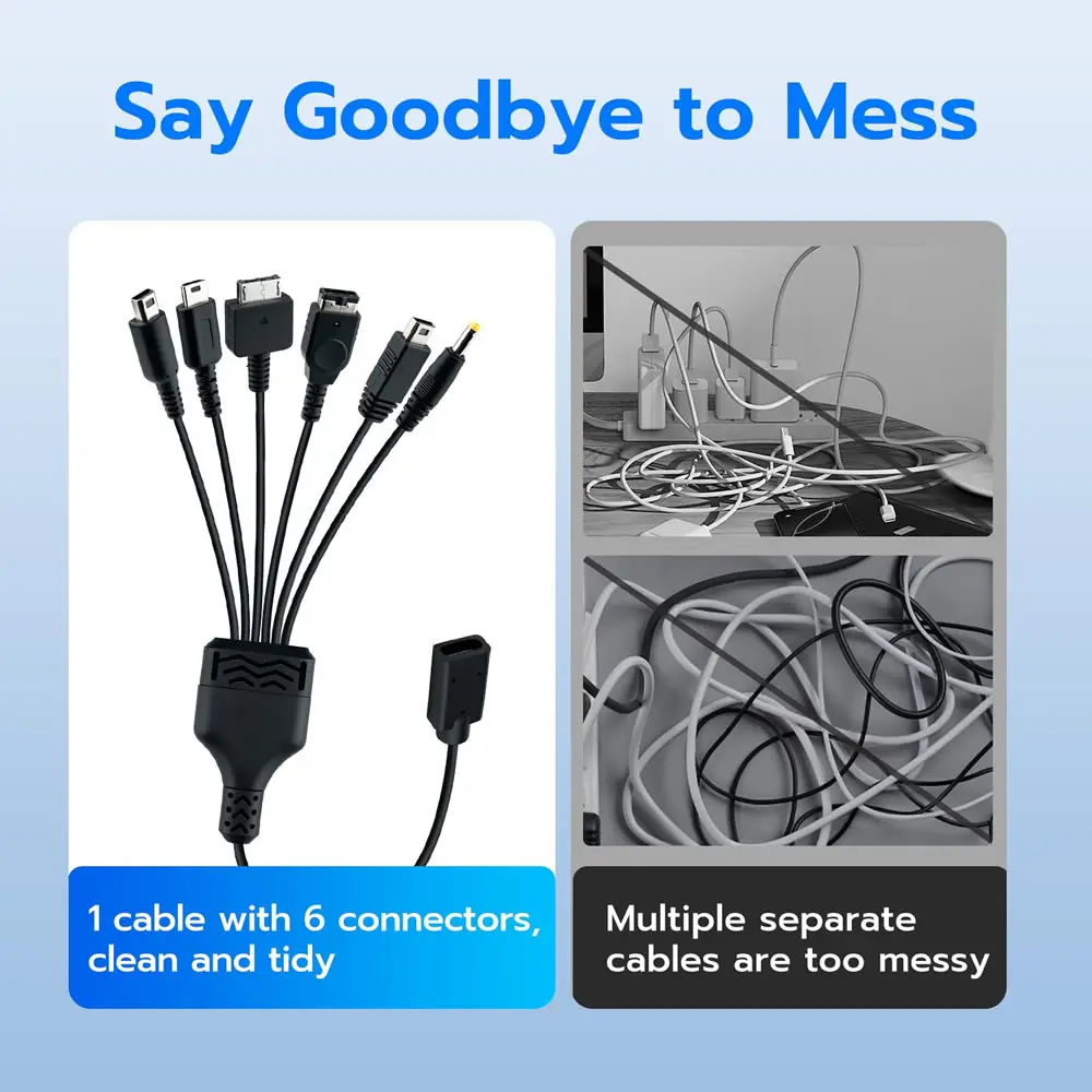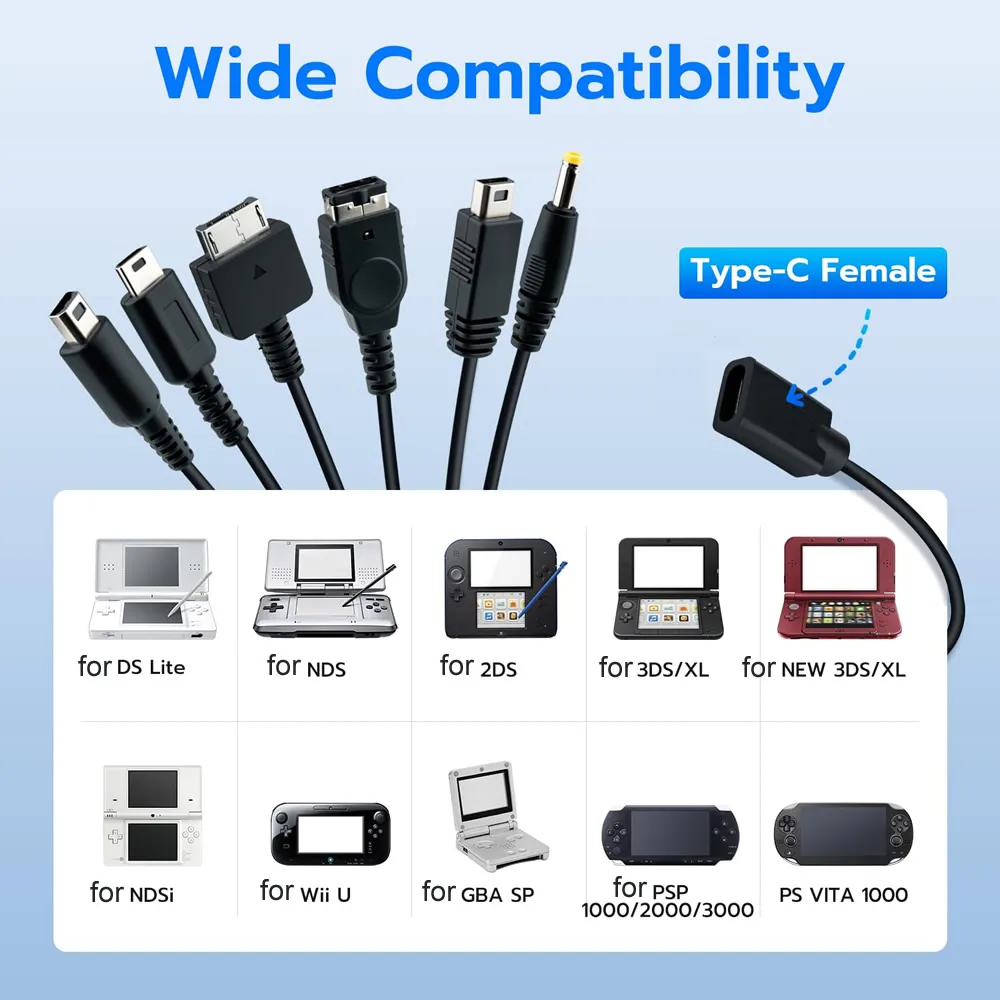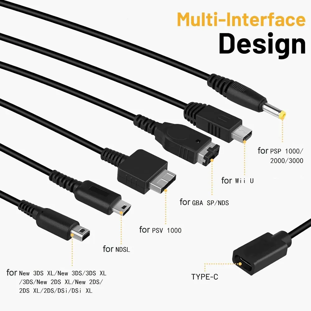 6 in 1 USB-C Type C Charging Cable for NDS Lite / Wii U / New 3DS XL LL /2DS / GBA SP / PSP / PSV Game Charger Cable Cords