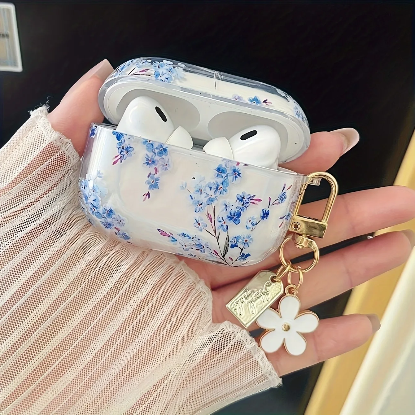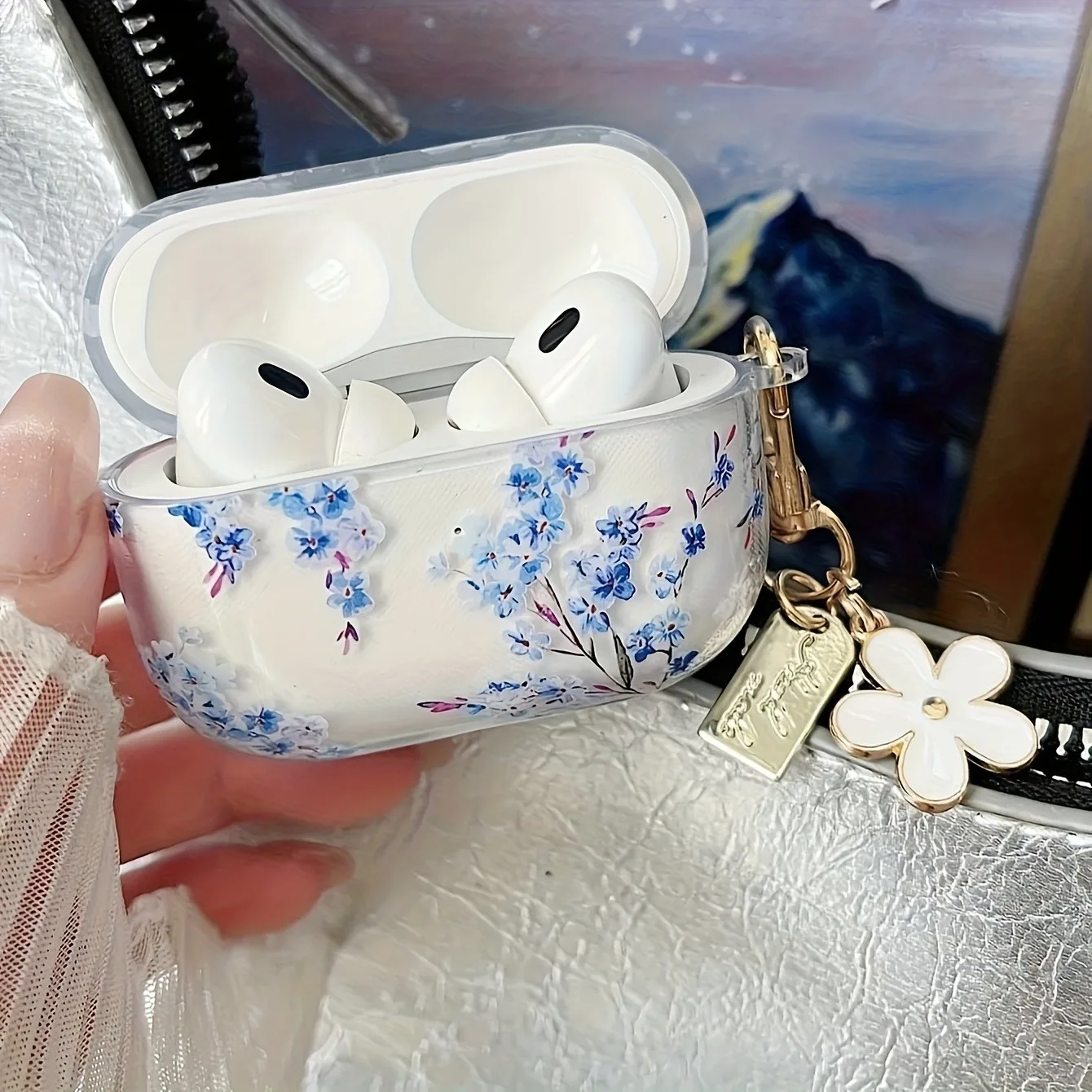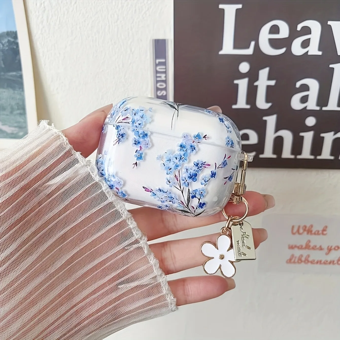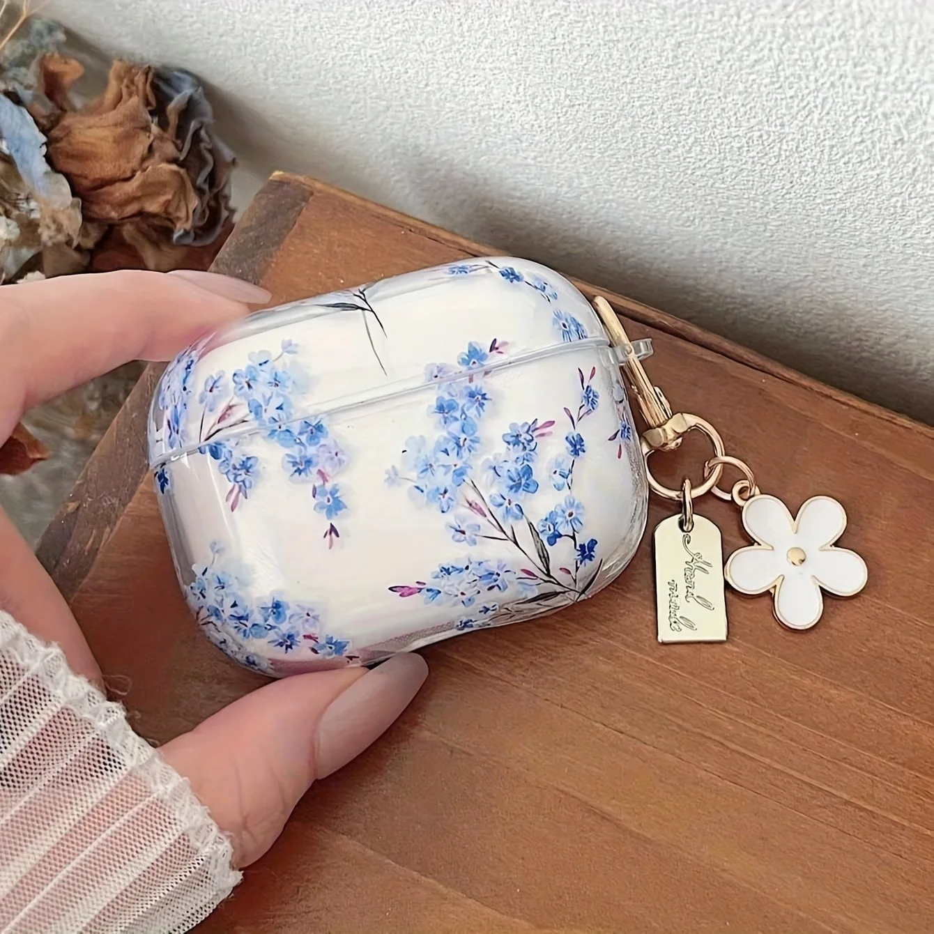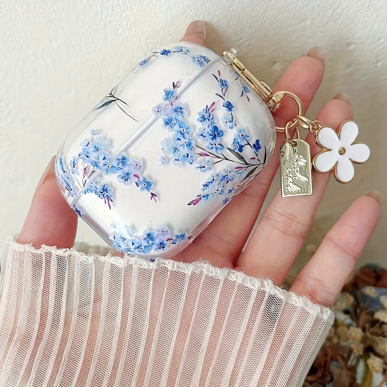 Aesthetic Blue Floral Transparent Earphone Case for AirPods Pro3/Pro2/Pro Headphones Cover For AirPods 4/3/1/2 Protective Shell