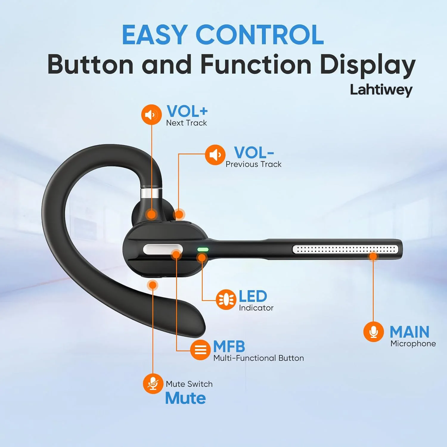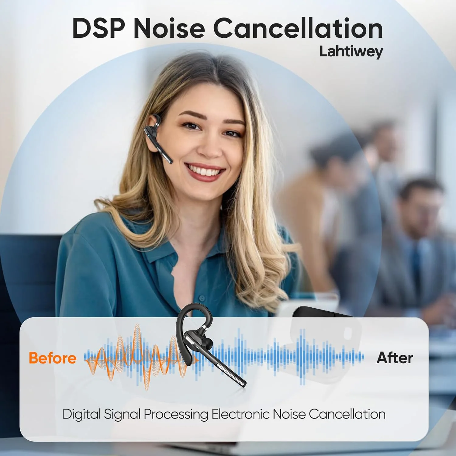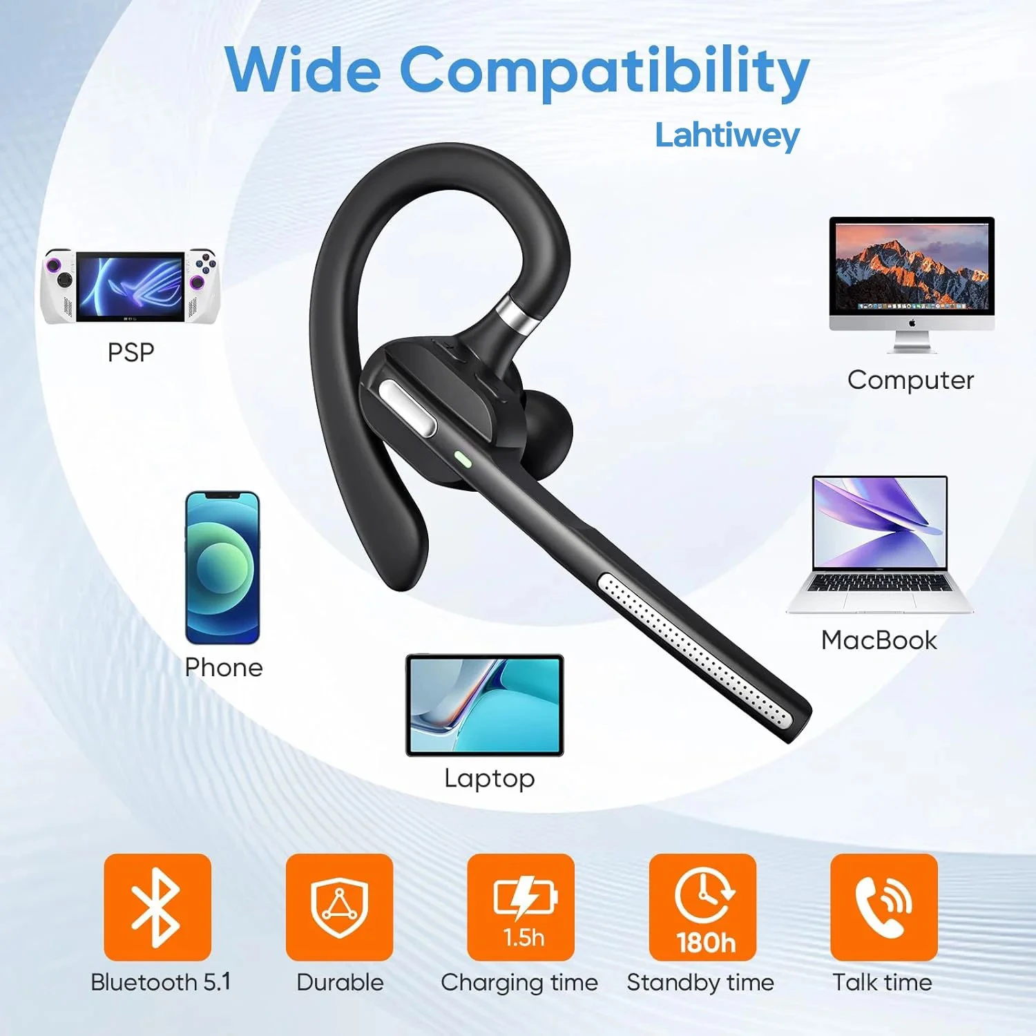 Bluetooth Headset with Noise-Cancelling Mic,Bluetooth Single-Ear (Monaural) Headset,Wireless Earpiece with LED Charging Case