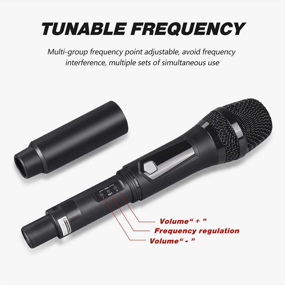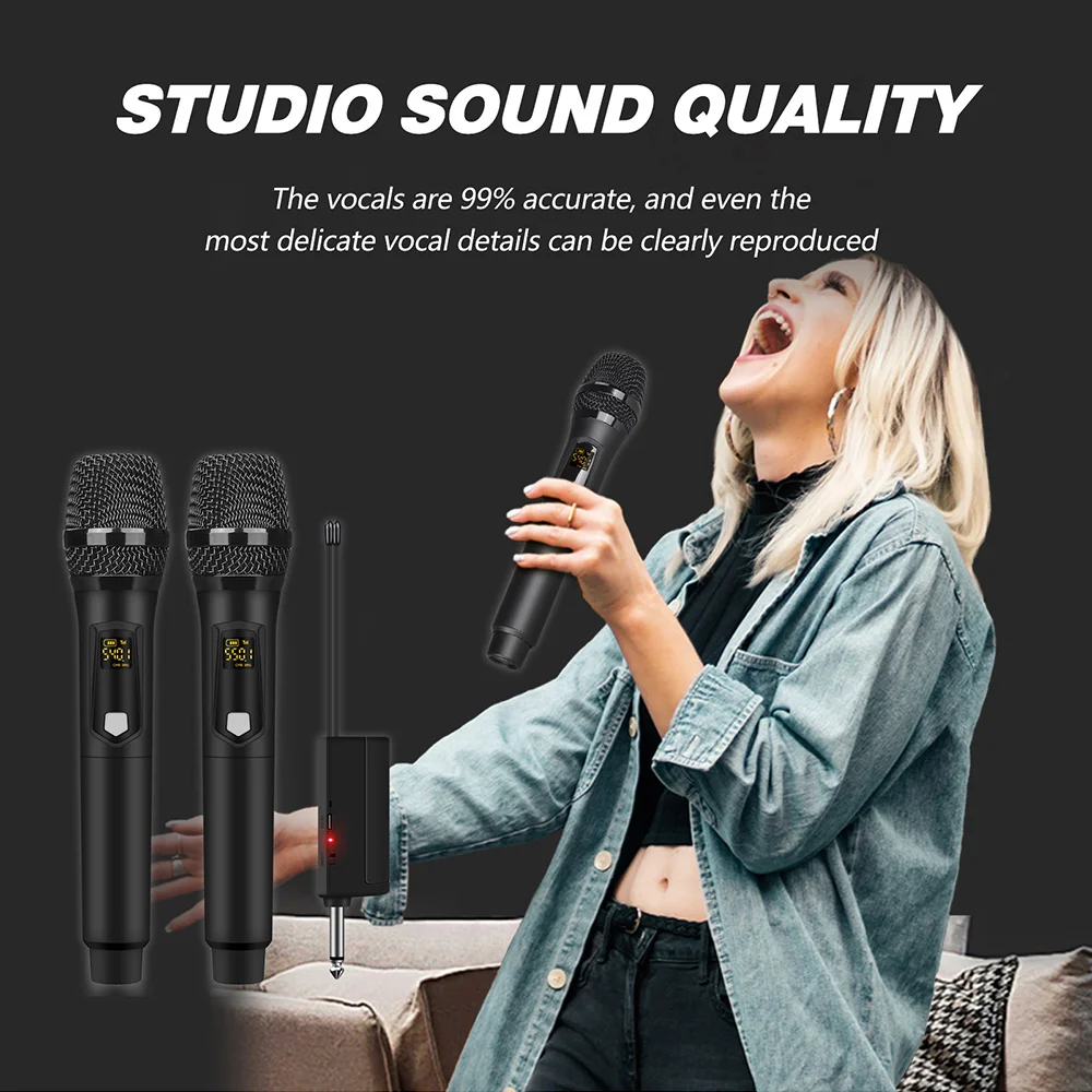 Debra Audio UHF Wireless Microphone System - 2 Rechargeable Handheld Mics for Karaoke, Stage, Church, Party & PA Speaker with Cl