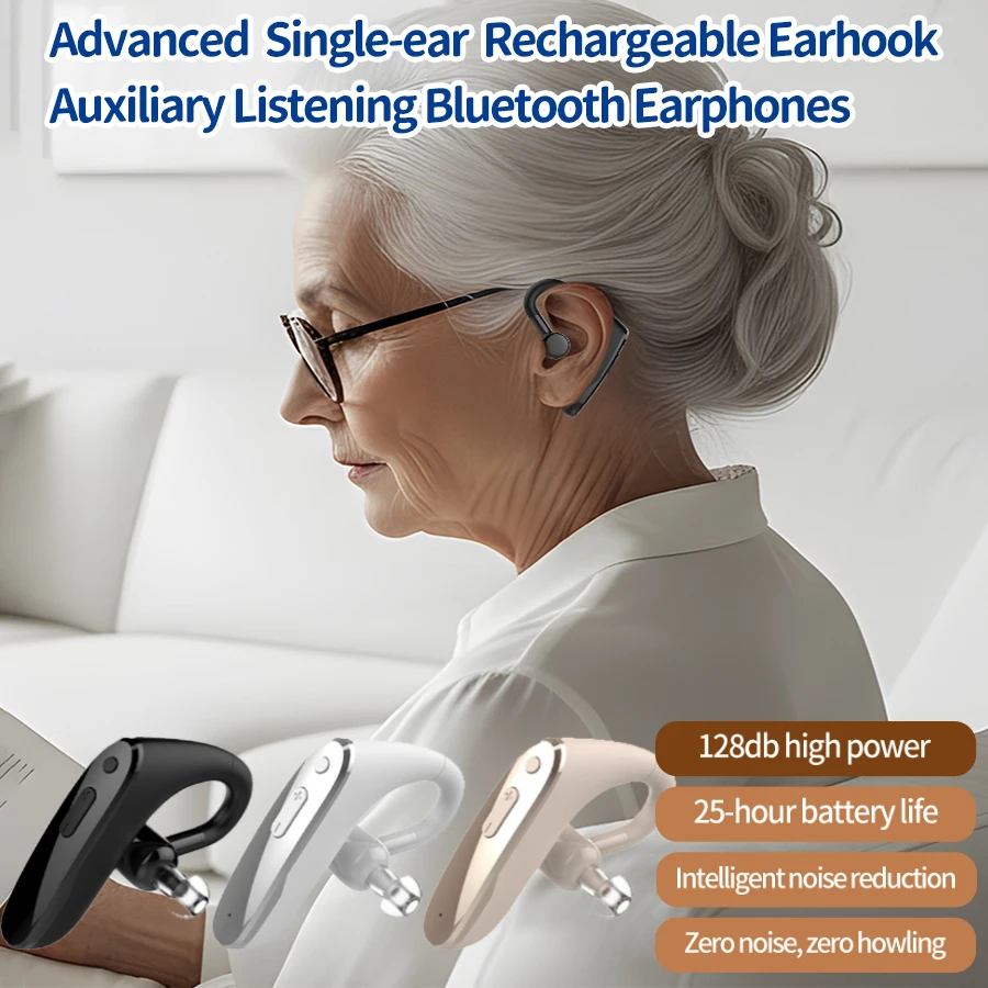 New Compact Lightweight Single Rechargeable Headphones Noise Cancelling Feature Ear-hook Earbuds Suitable For The Elderly