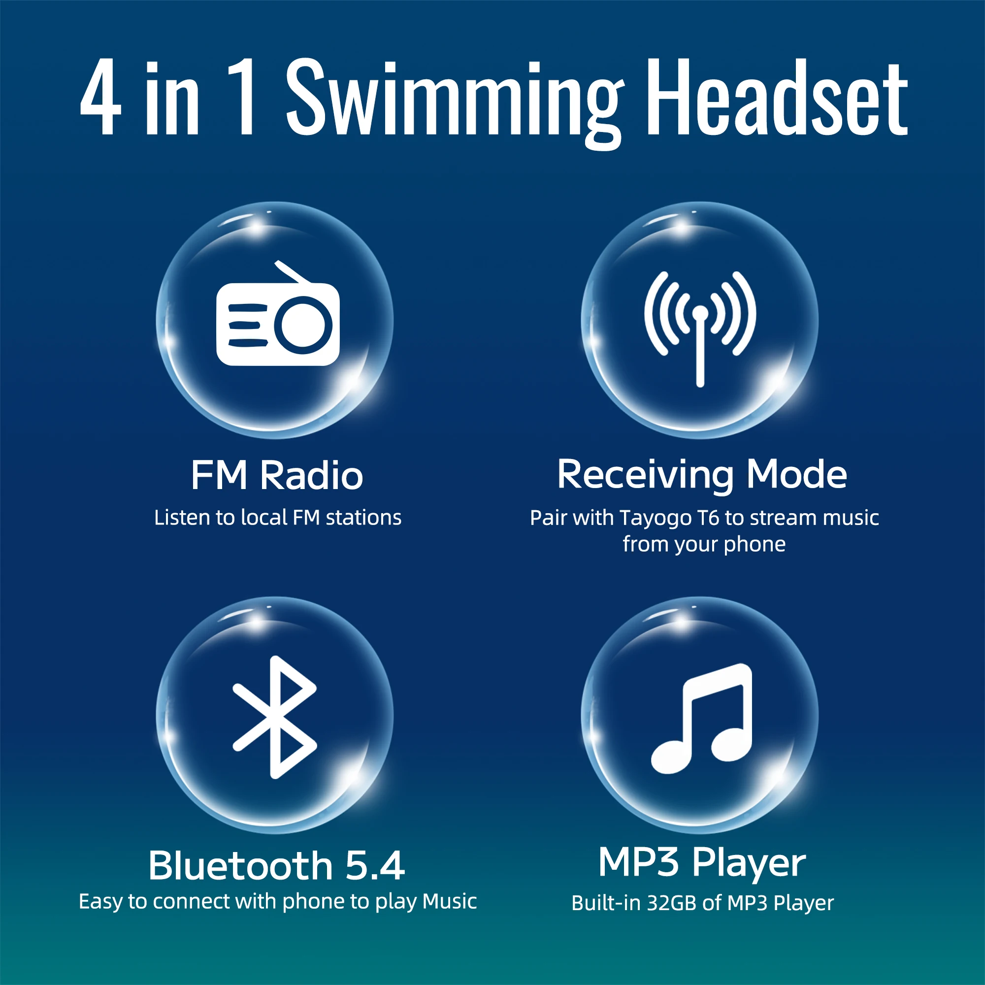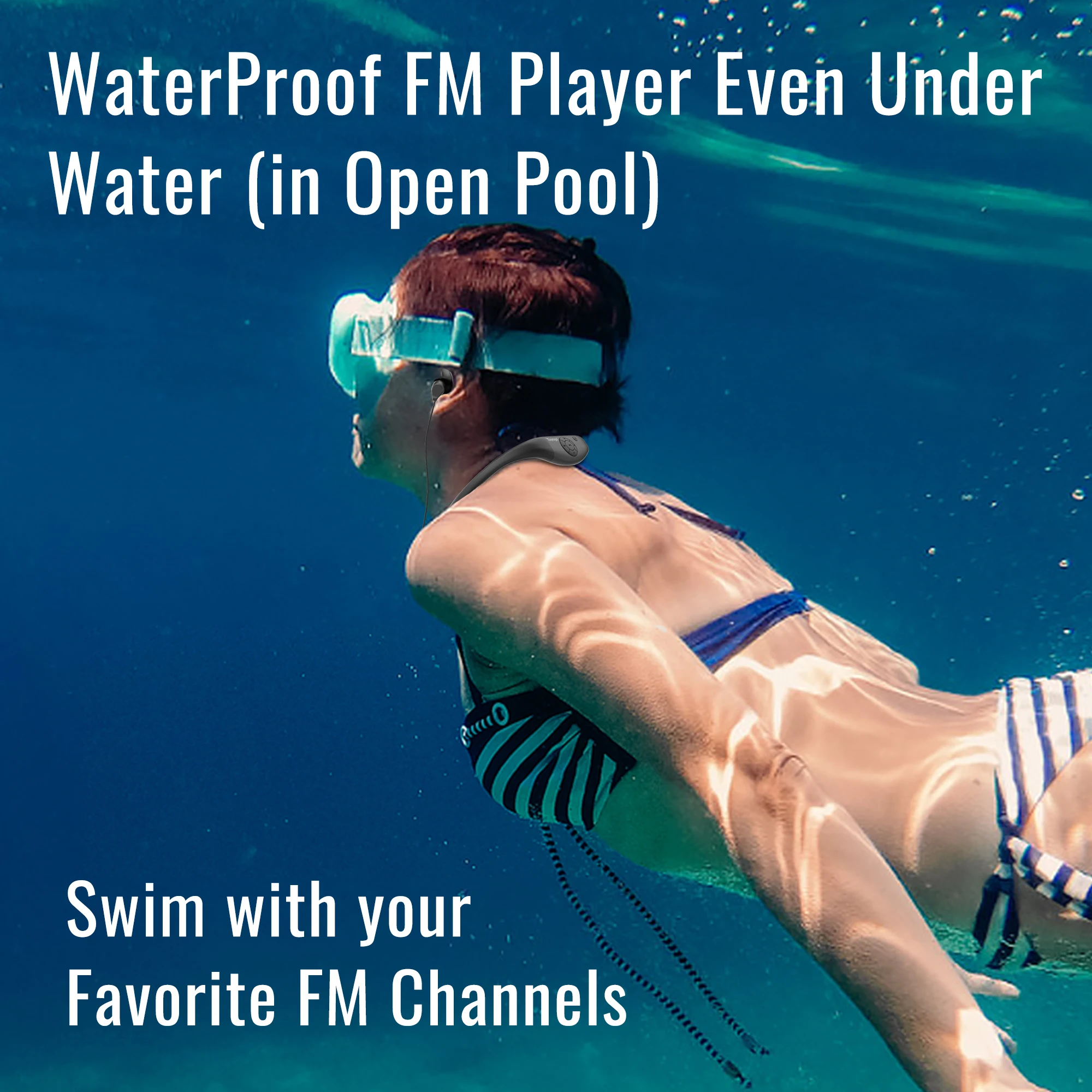 Tayogo Waterproof Mp3 Player for Swimming + Bluetooth Headphones for Running | 32GB Mp3 Playing, Bluetooth, FM, Receiving Mode