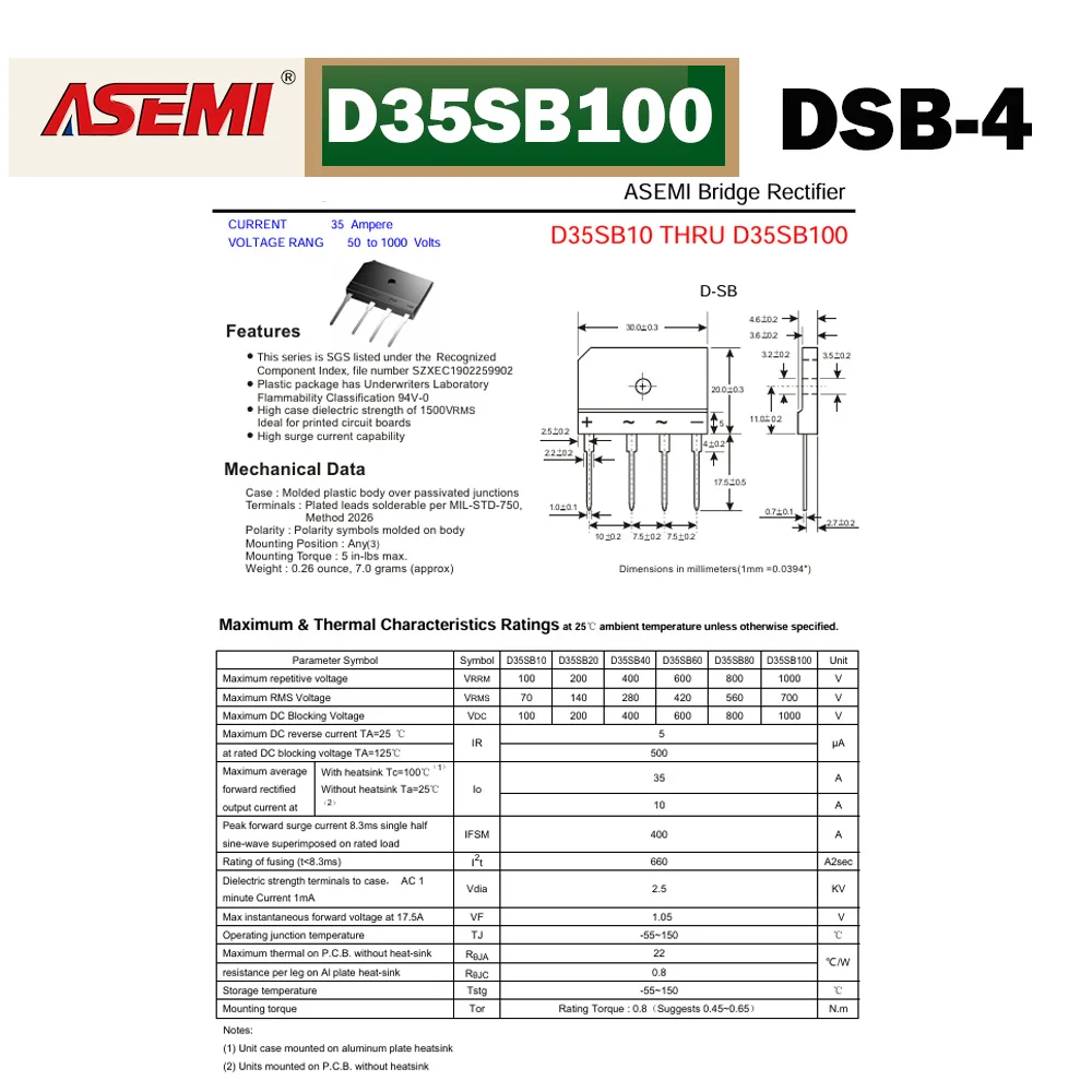 D35SB100 Bridge Diode Rectifier 35A 1000V ASEMI
