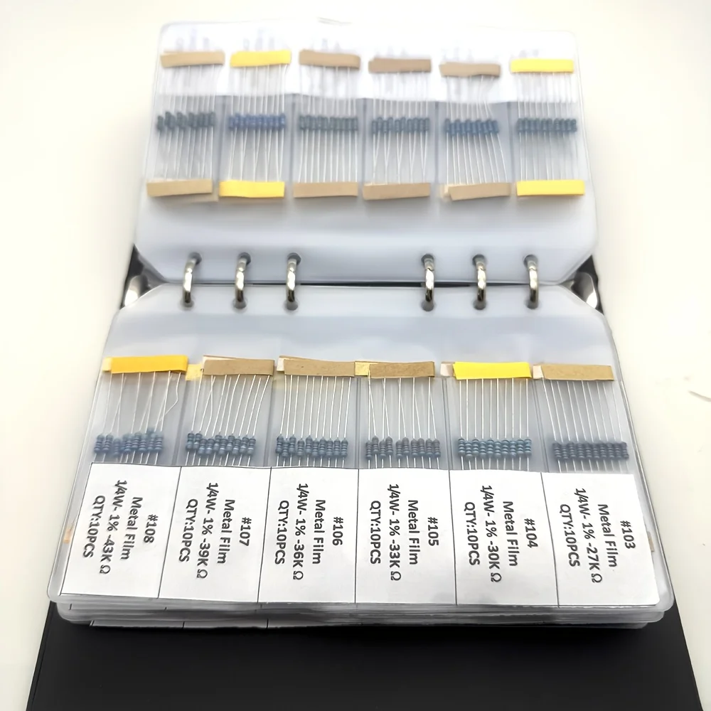 0.25W 122/130/140/158Values 1R~10M Ohm 1/4W 1% Metal Film Resistor Assorted Resistor Kit Pack Sample Book