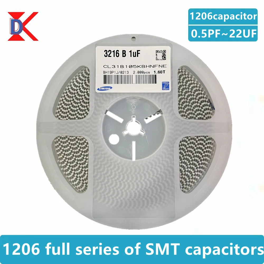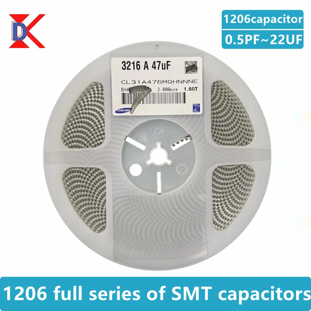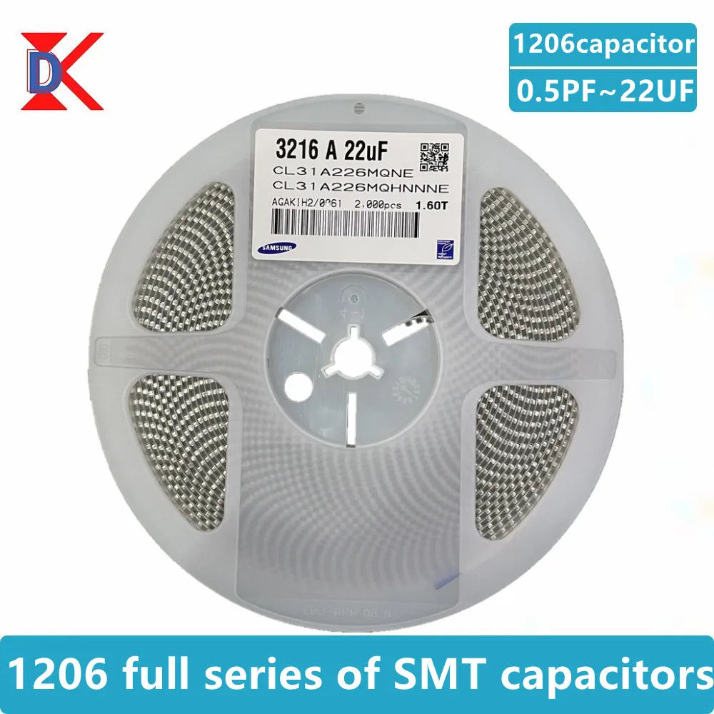 1206 SMD Multilayer Ceramic Capacitors 2000Pcs-4000Pcs 0.5PF-10NF 20NF-82MF 100NF 220NF 470NF 1UF 2.2UF 4.7UF 10UF 22UF