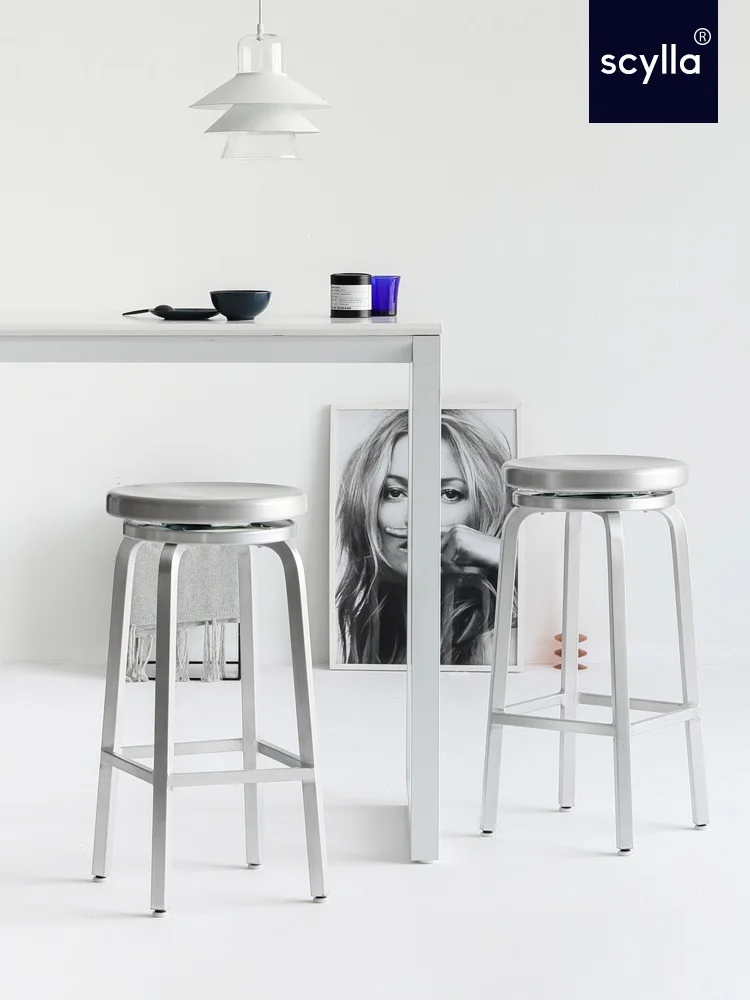 Nordic Style Aluminum Bar Stool,Modern Metal KTV Stool, Outdoor Hotel Front Stool