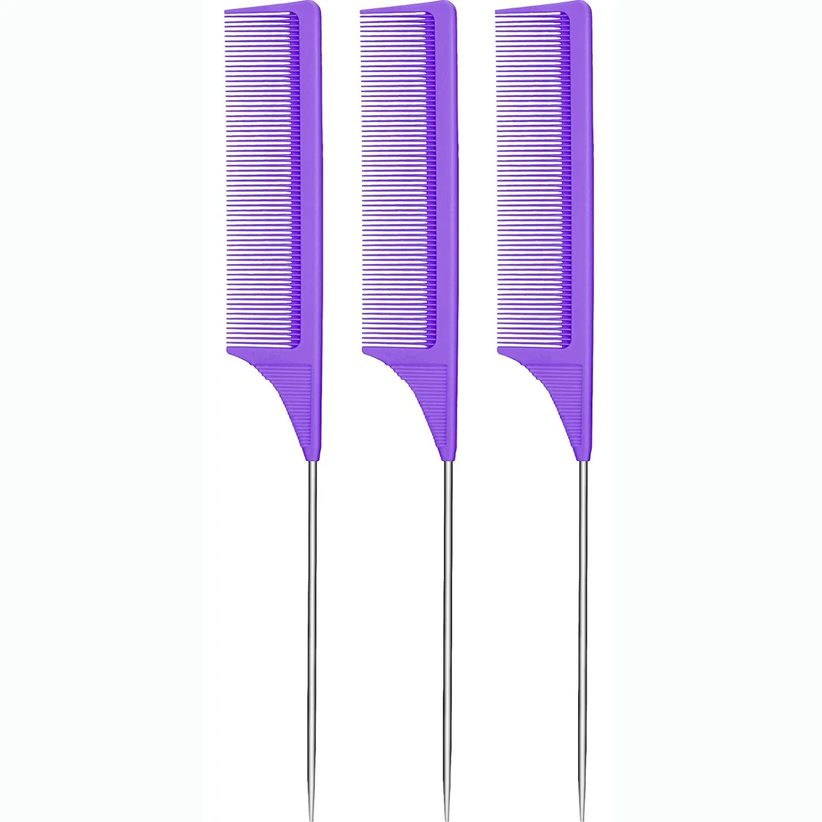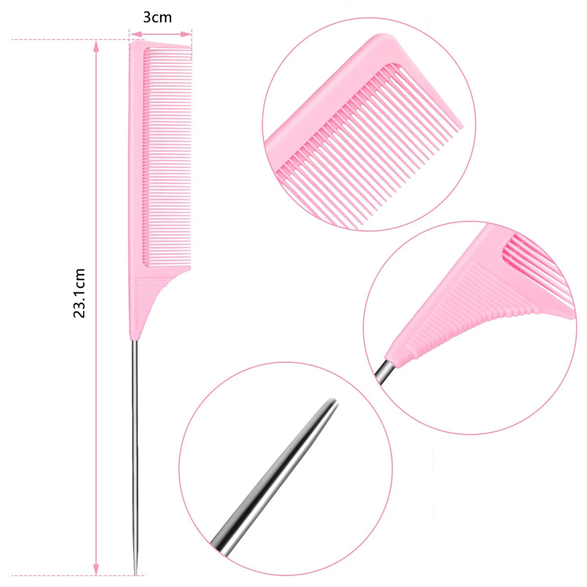 3pcs professional pointed tail salon ponytail comb anti-static hair comb steel needle mouse tail comb Special for real hair wigs