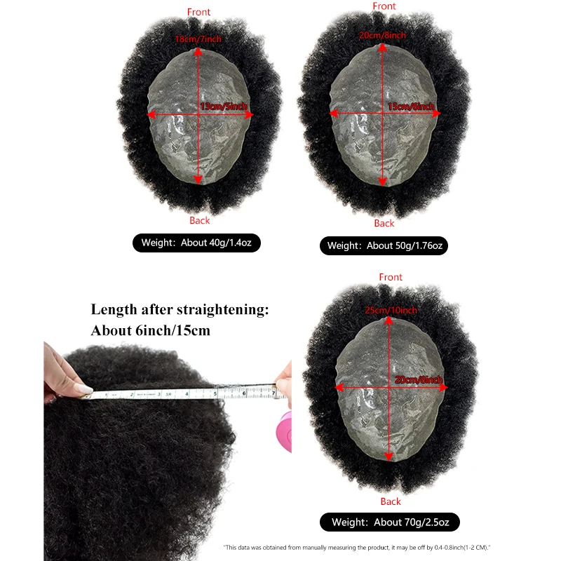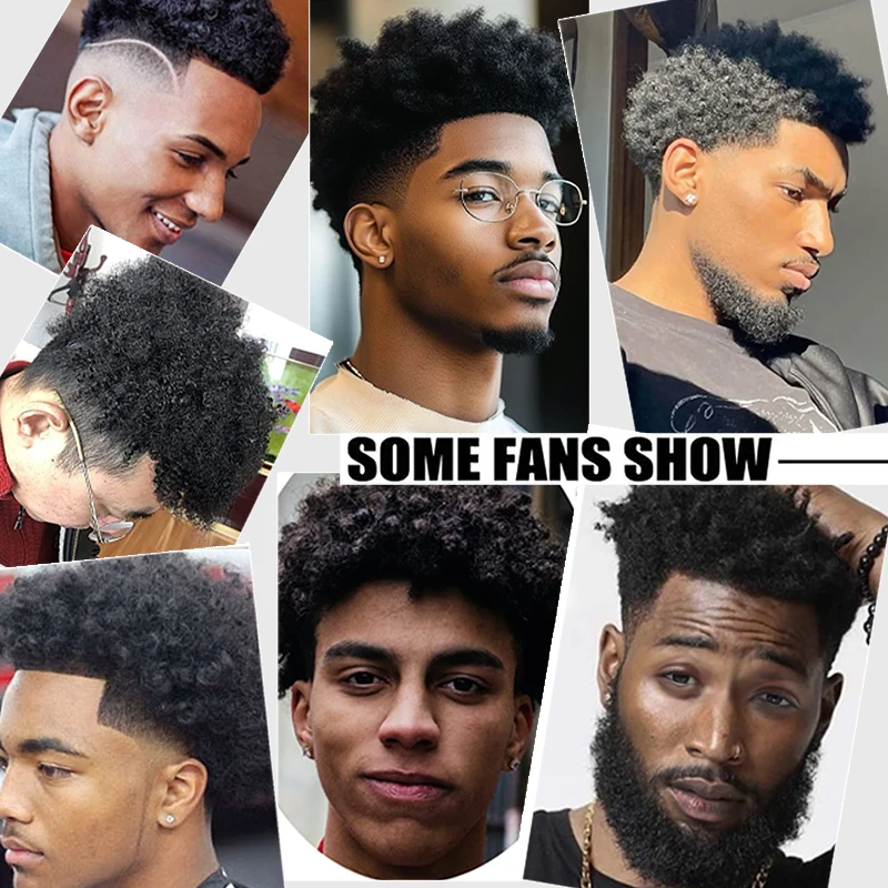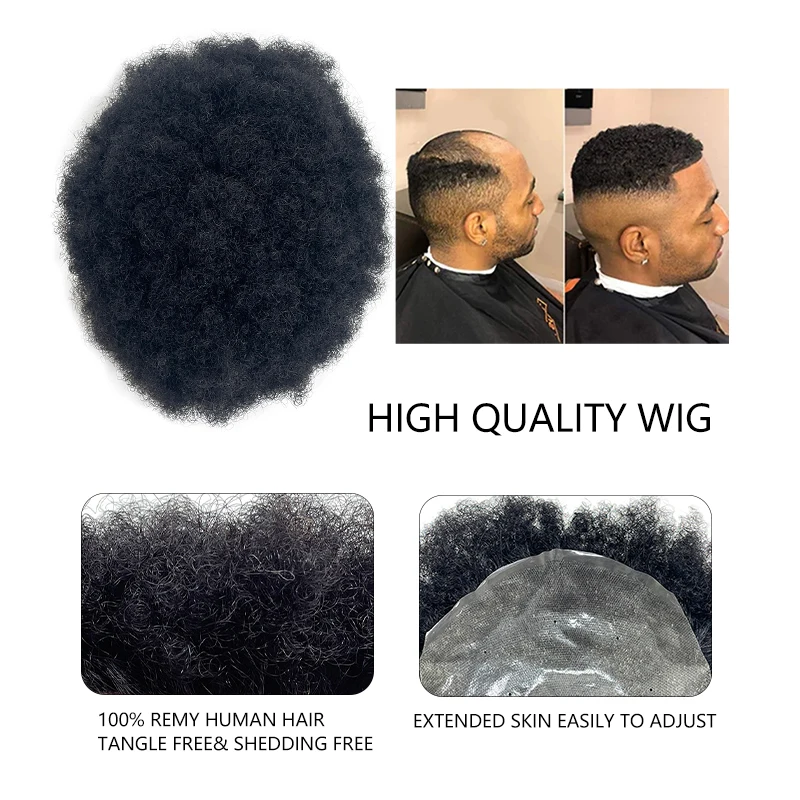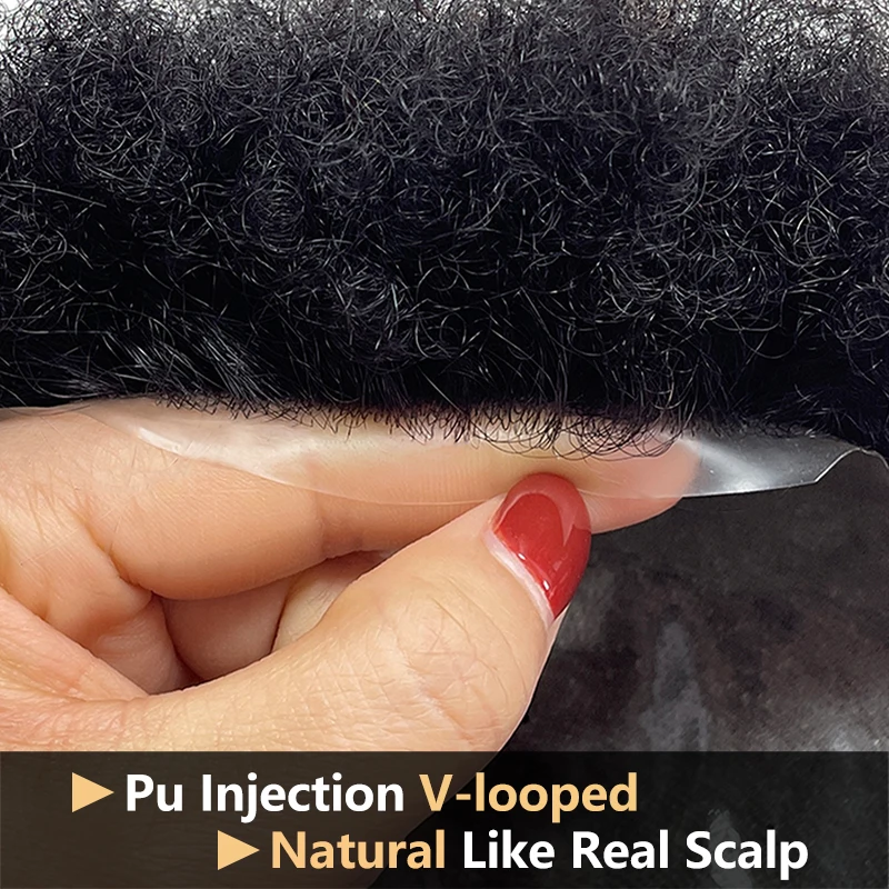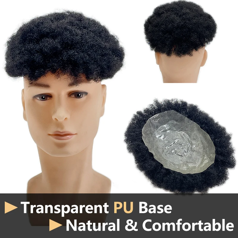 100% Human Hair Men's PU Capillary Prothesis Toppers Afro Curly Hair Ultra Thin Breathable Natural Looking Daily Hair Accessory