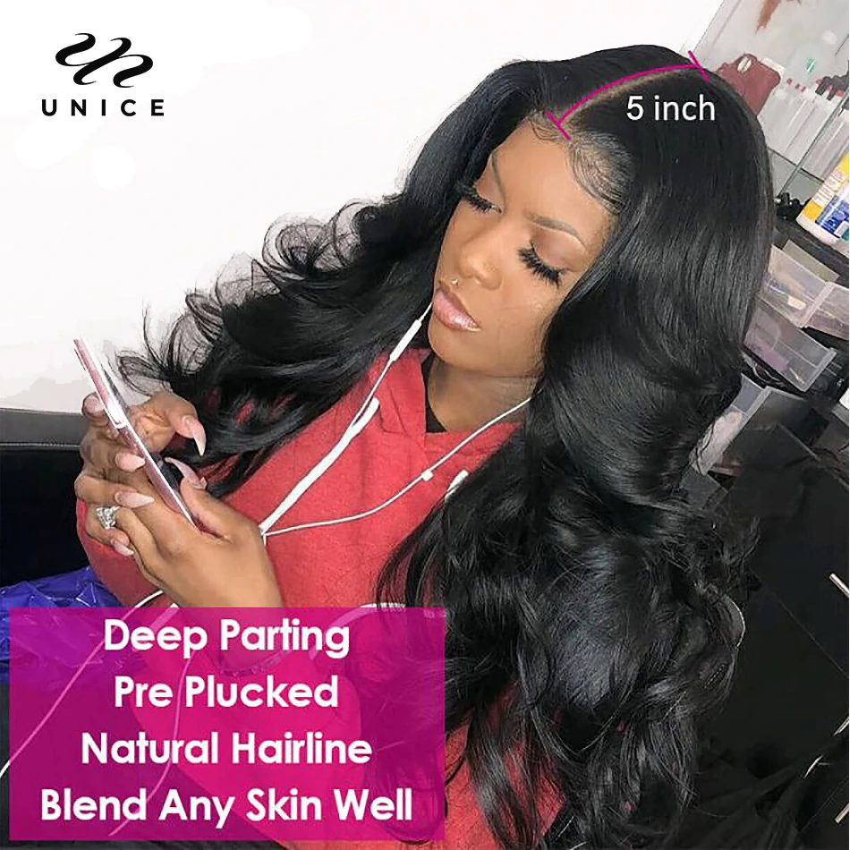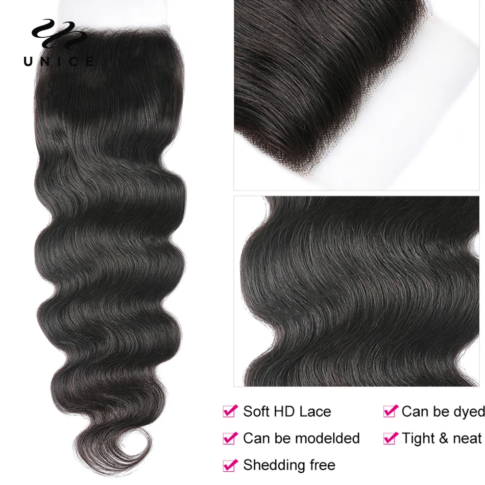 Unice Hair 5x5 HD Lace Closure Body Wave Brazilian Virgin hair 100% Human Hair undetectable Lace Closure Invisible Knots Skin M