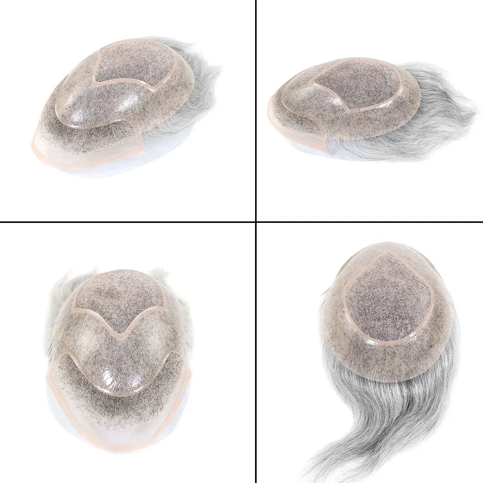 #1B80 Grey Men Toupee Human Hair Piece Natural Hairline Lace&Mono&PU Breathable Lace Front Male Wig Men's Replacement Prosthesis
