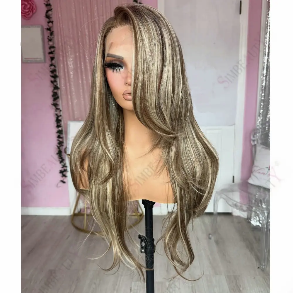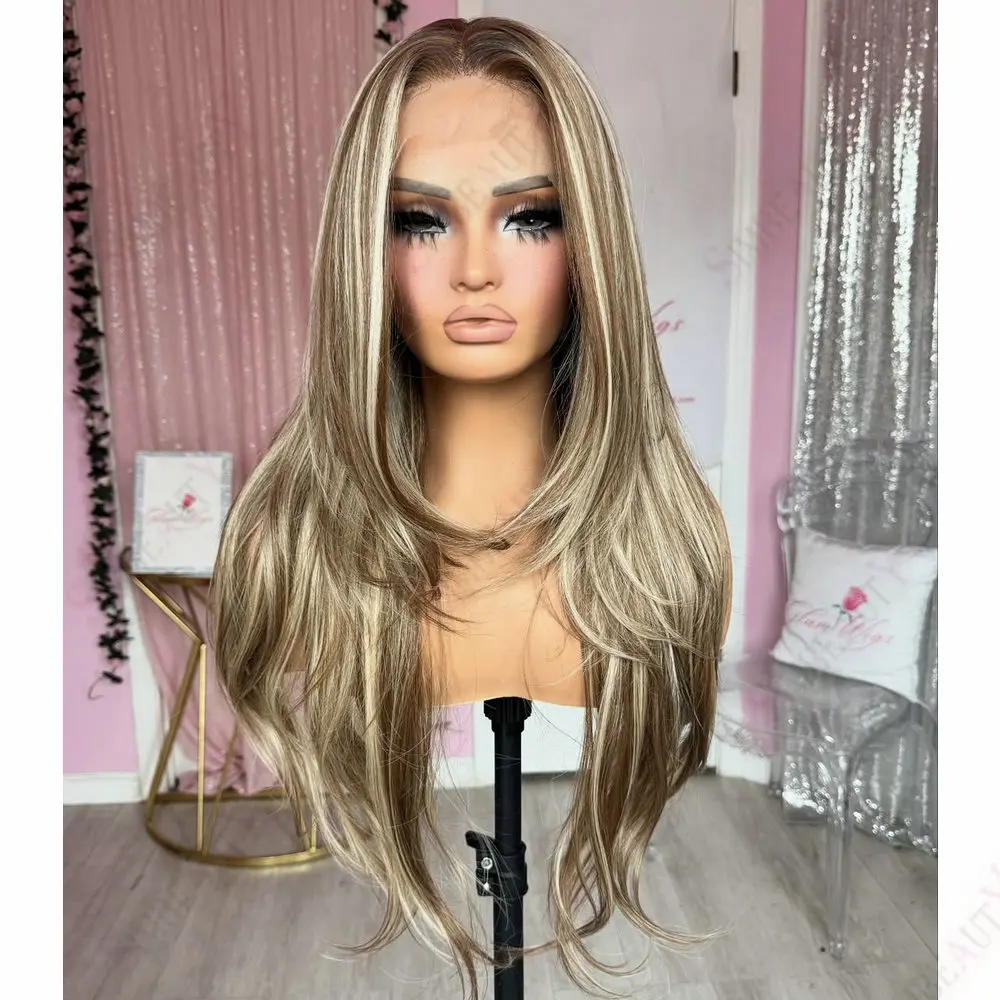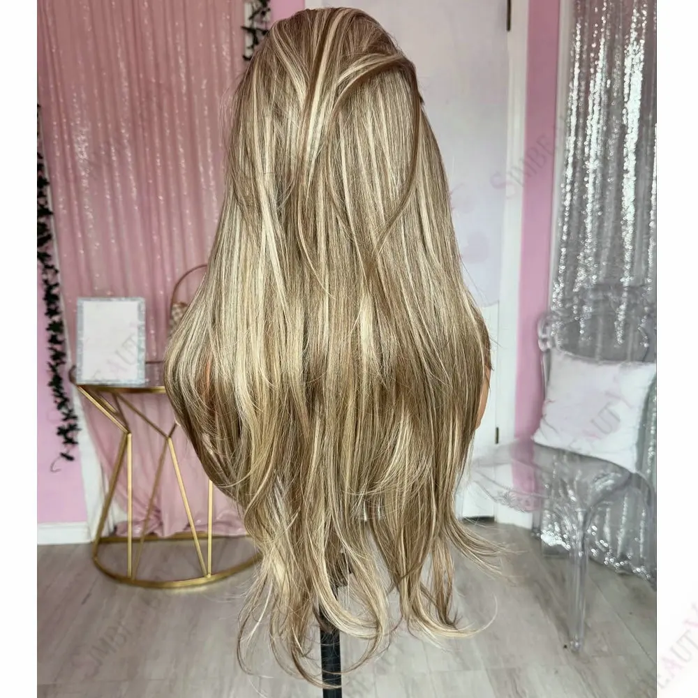 Ash Blonde Brown Hightlight 100% Human Hair 13*6Lace Front Wig for Women Natural Straight European Remy Full Lace Wigs Glueless
