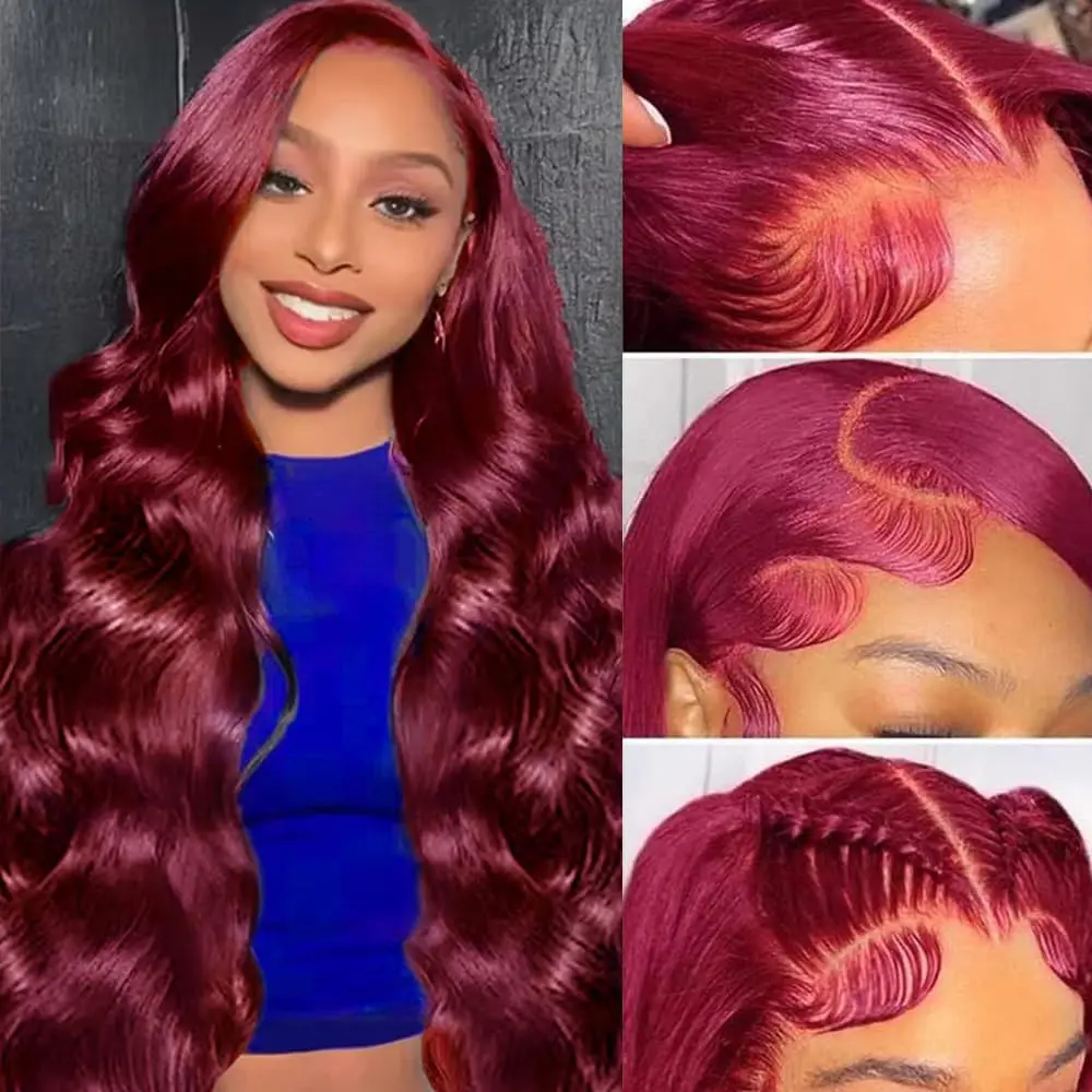 Burgundy Colored 13x4 HD Body Wave Lace Front Wig Human Hair 99J Red 13x6 Full Lace Frontal Wig 200 Density 44 46 Inch Remy Hair
