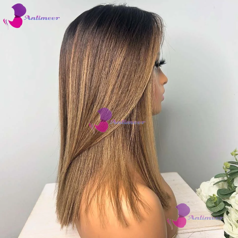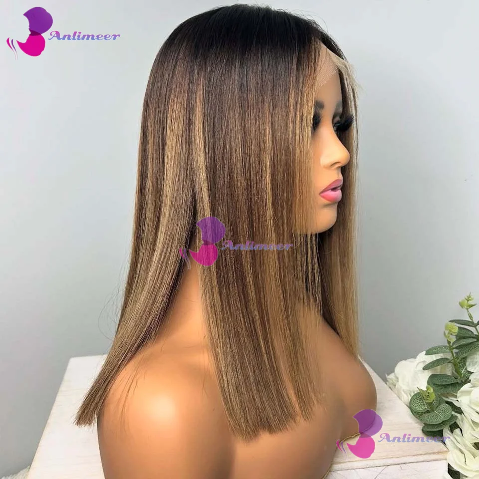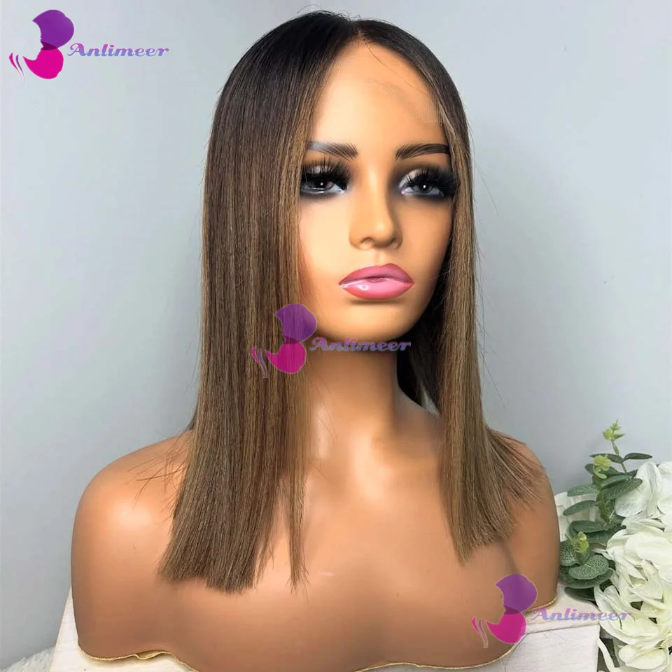 Highlight Brown Blonde Glueless Short Bob Human Hair Silk Top Wigs Brazilian Bleached Knots Bleached Knots 360 Lace Front Wigs