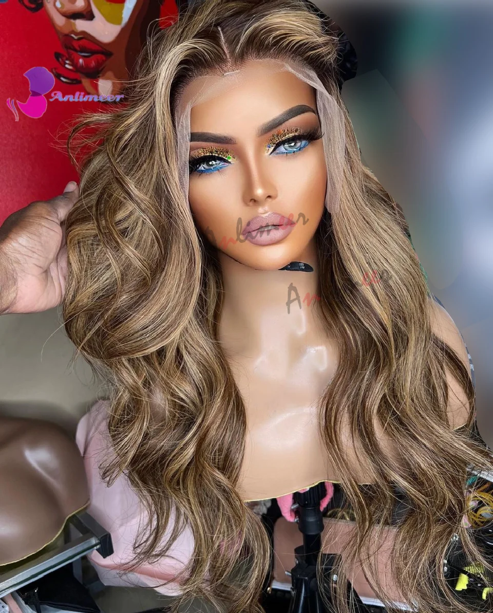 Honey Blonde Highlighted Lace Front Wigs Human hair Middle Part Wig Human Hair 100% Human Hair Wigs Frontal WIgs Human Hair 4X4