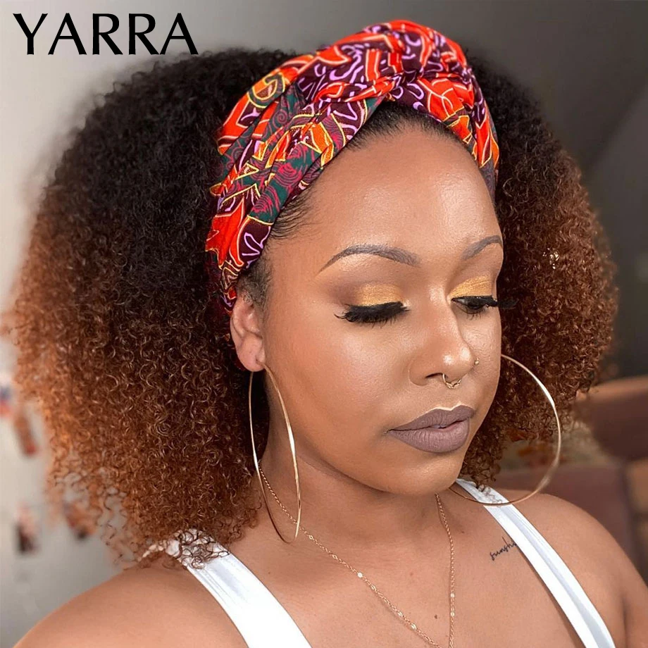 Ombre Colored 1b/30 Honey Blonde Afro Kinky Curly Headband Wig 100% Human Hair Wigs Full Machine Made Brazilian Remy Hair Yarra