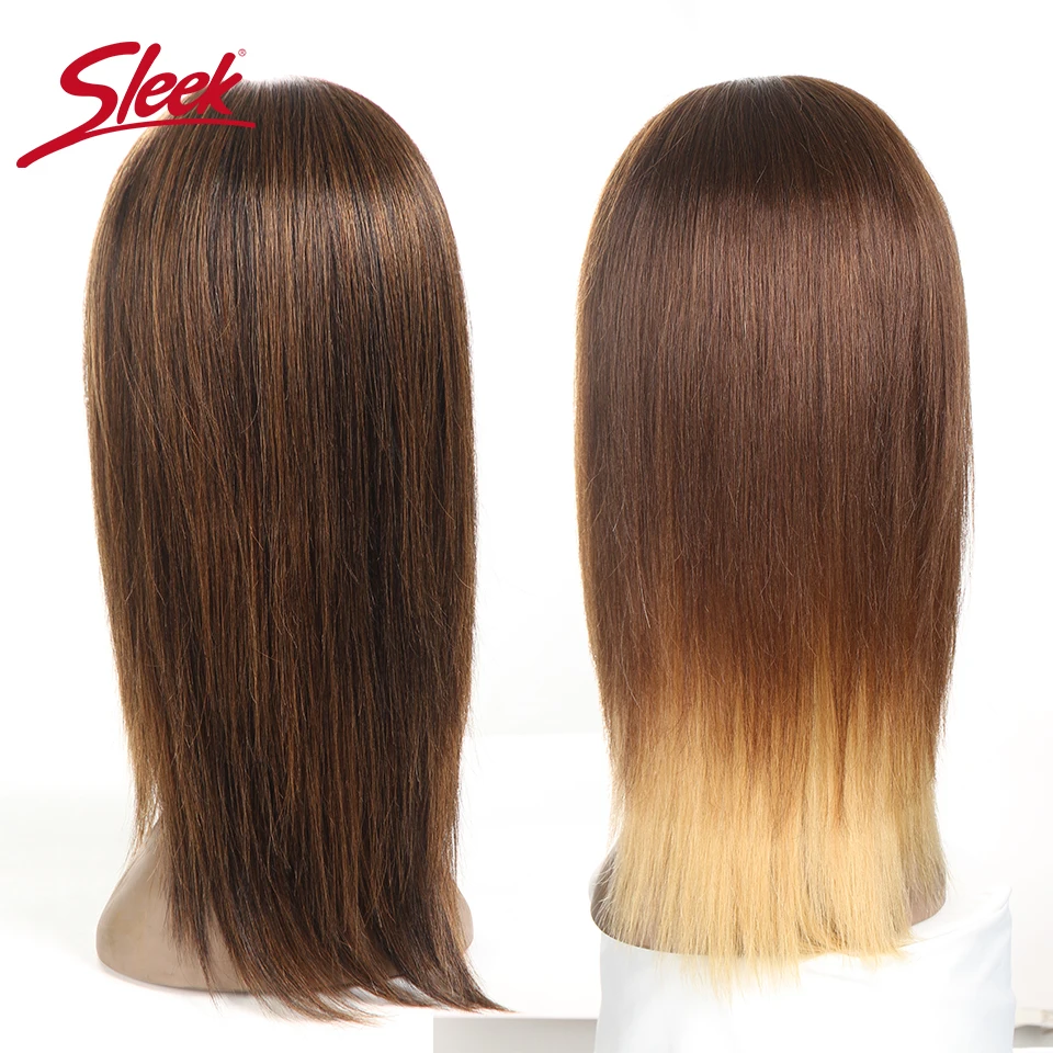 Sleek Brazilian Straight Lace Front Human Hair Wigs Brown 33# Blonde Highlight F1B/30 Red 99J Color Wig 13X4 Lace Frontal Wigs