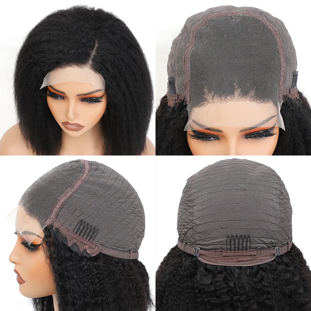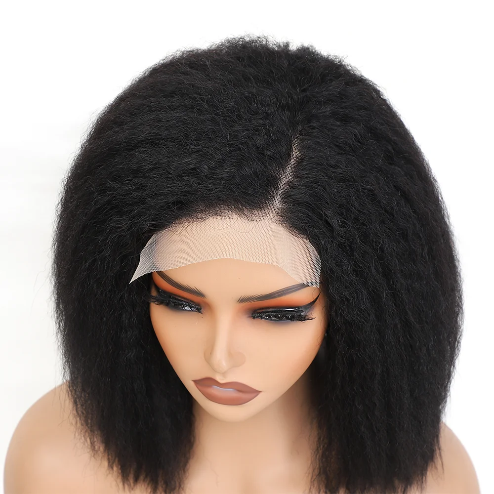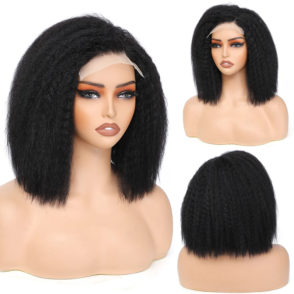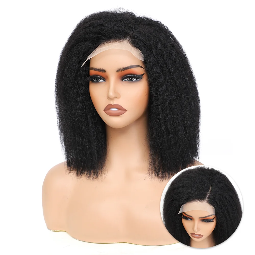 Transparent Kinky Straight Lace Front Wigs Pre Plucked Yaki 5X5 Short Bob Human Hair Wigs For Woman Natural Lace Closure Bob Wig