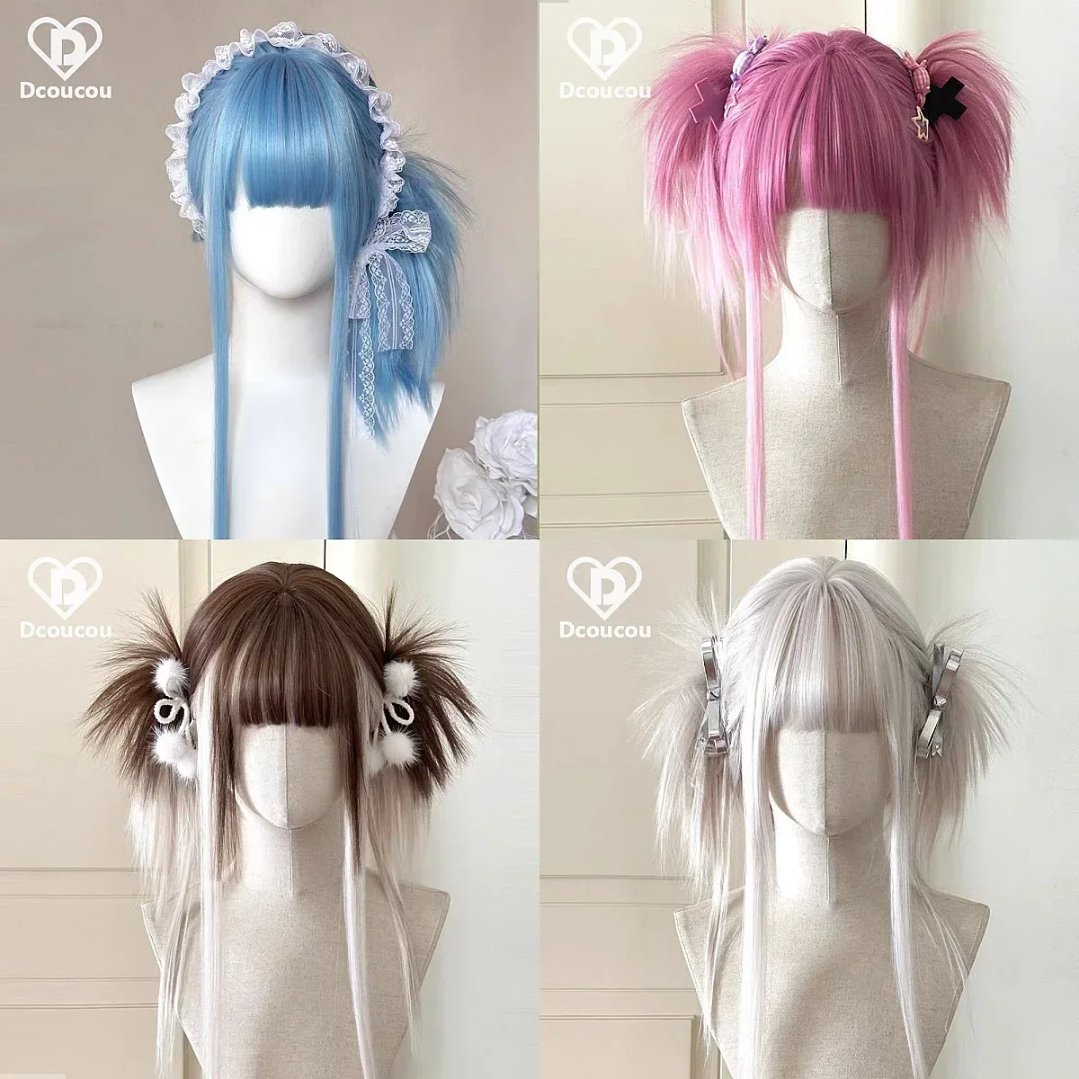 Ashely Wig for Women Straight Lolita Cute Braided Wigs Nature Colorful Y2K Cosplay Wig with Bands for All Kinds of Styling