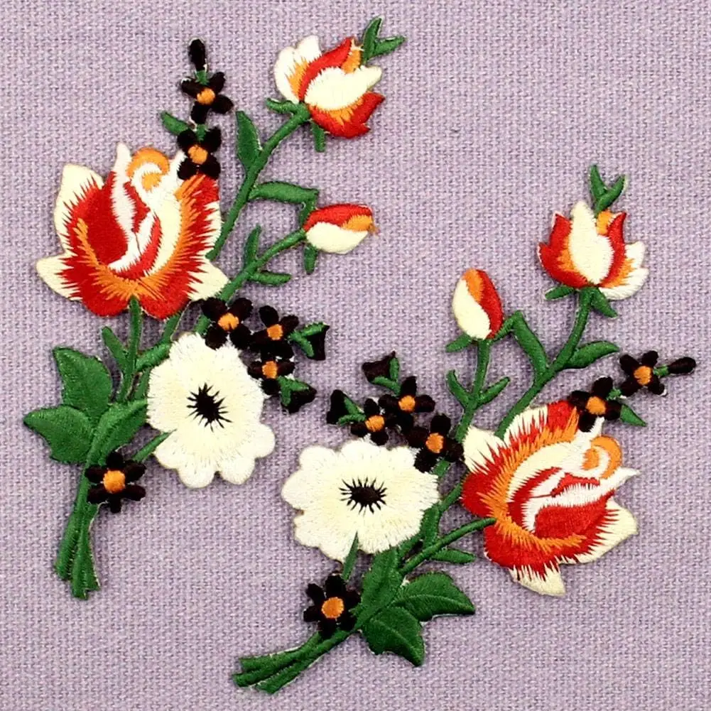 1 Pair Pink blue Roses Pair Flowers Floral Bouquet Boho Embroidered Appliques Iron-on Patches New