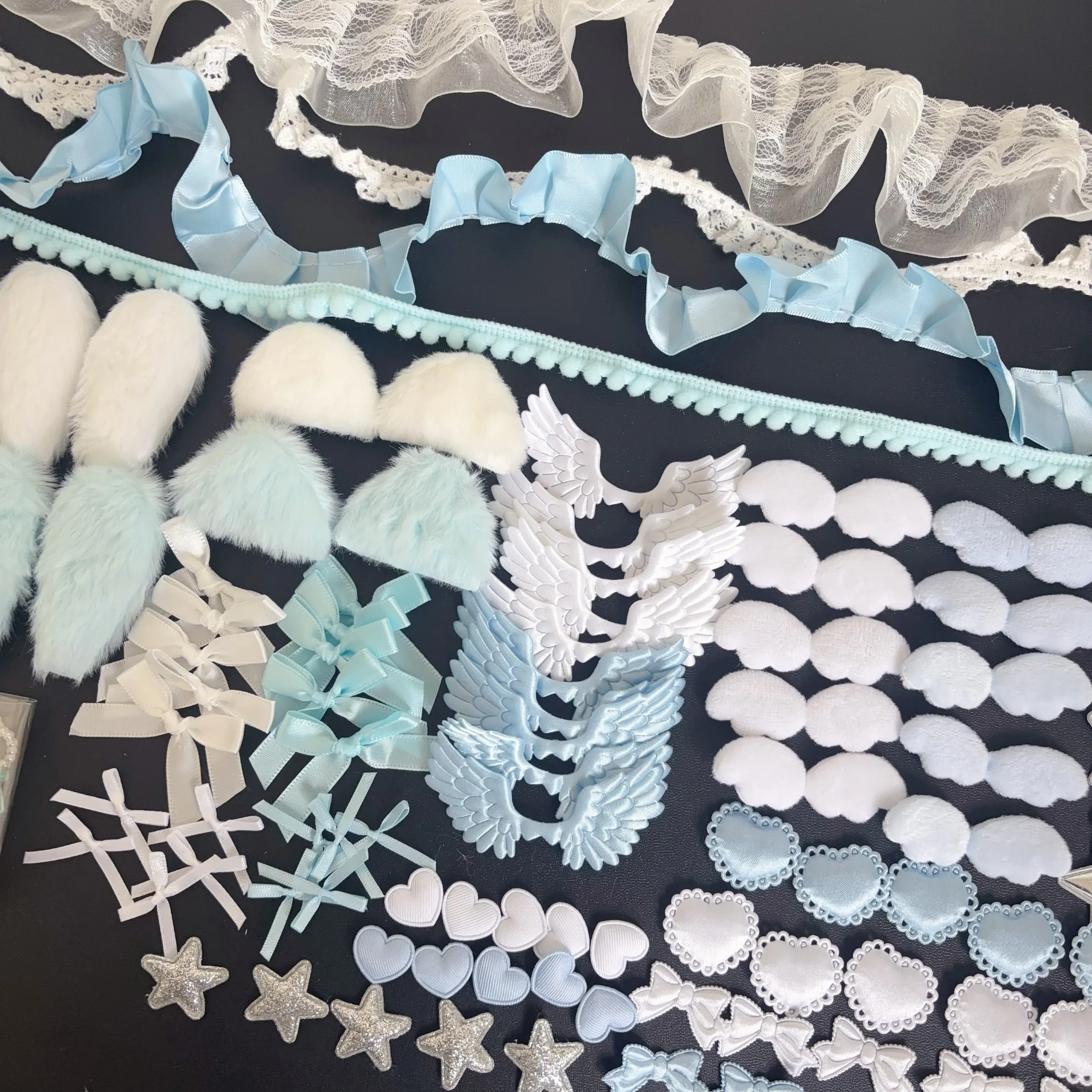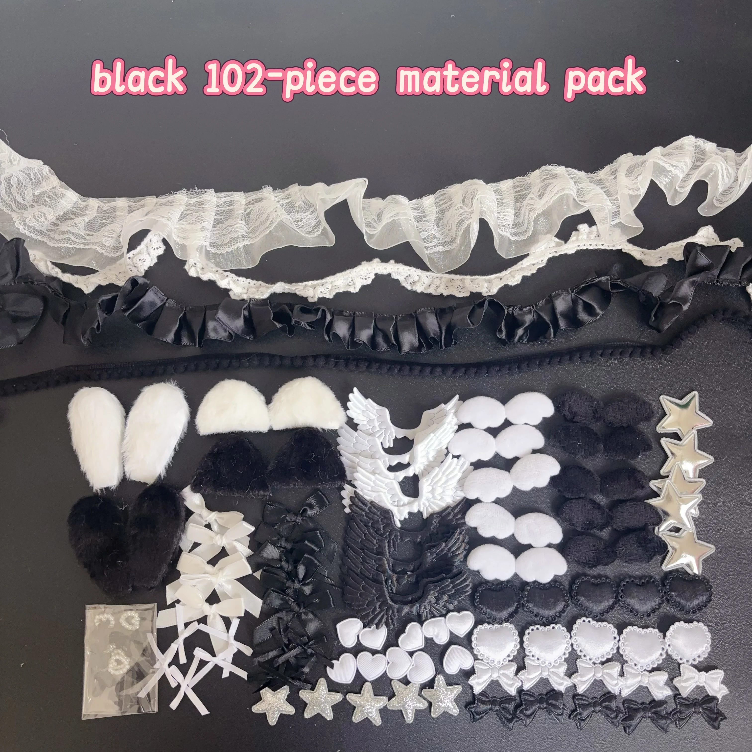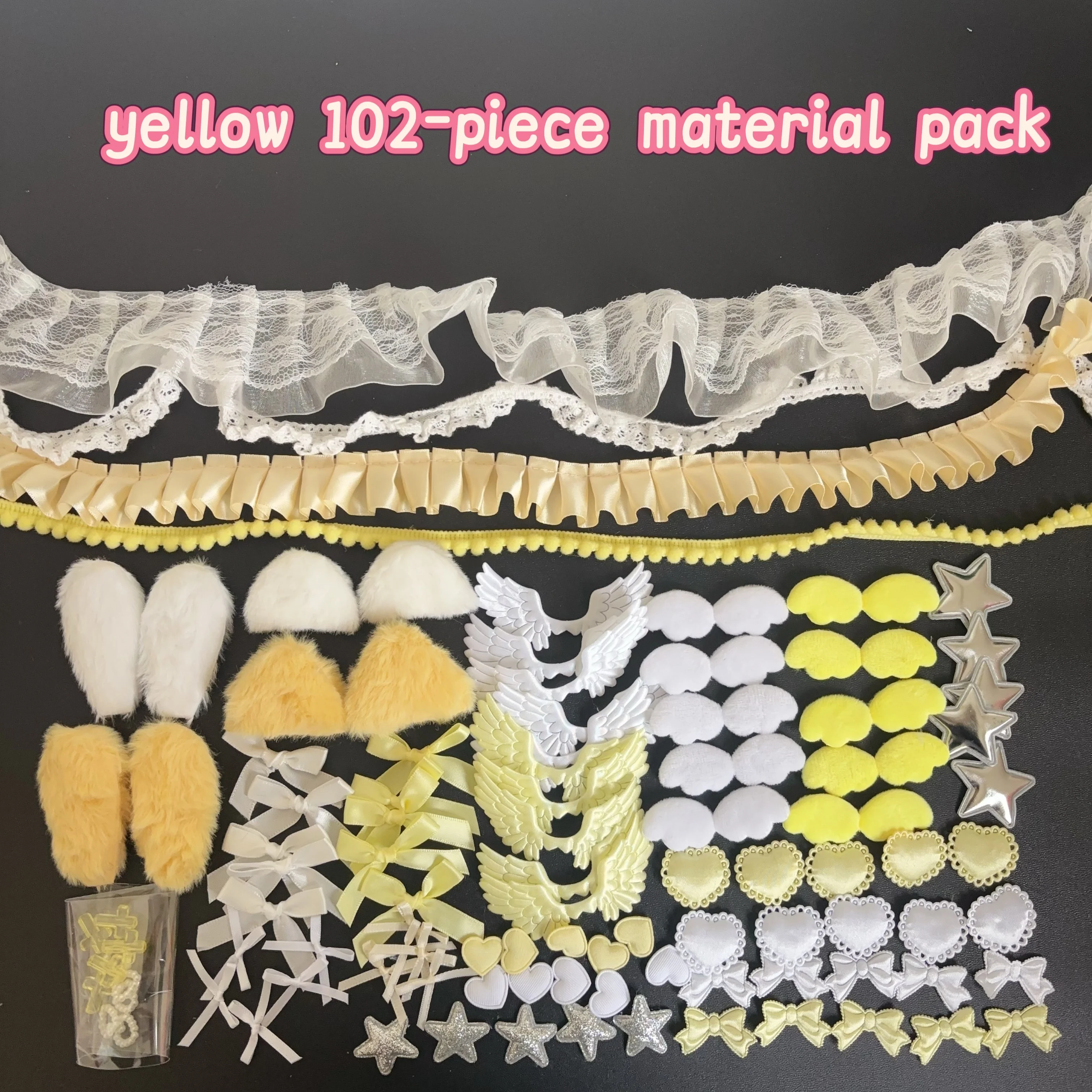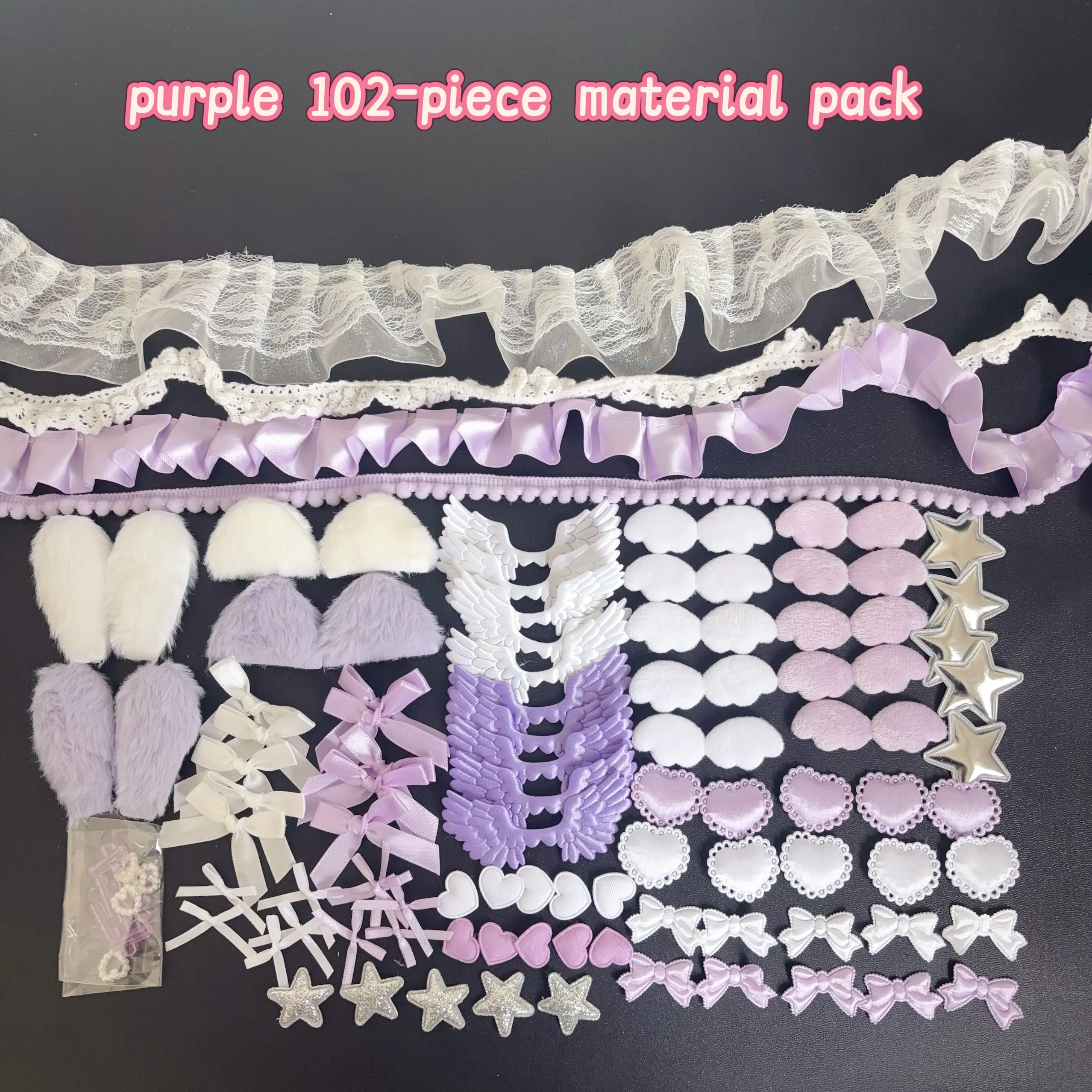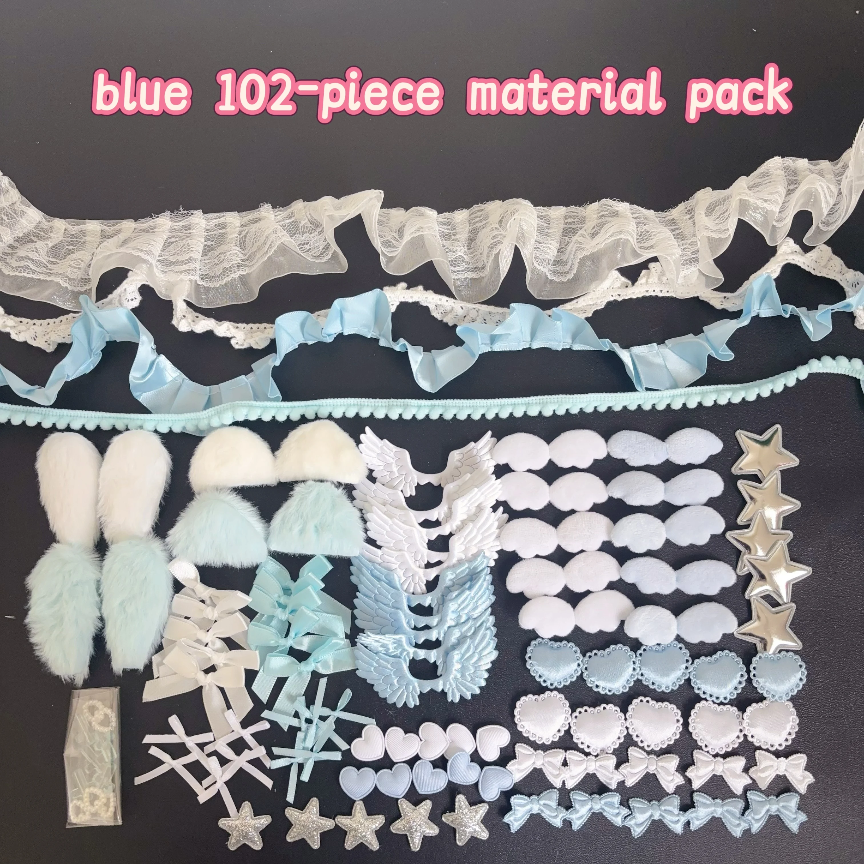 102 Pieces of Ribbon Lace Trim Handmade Material Kit Combination: Angel Wings, Plush Bunny Ears, Bow, Heart, Five-Pointed Star