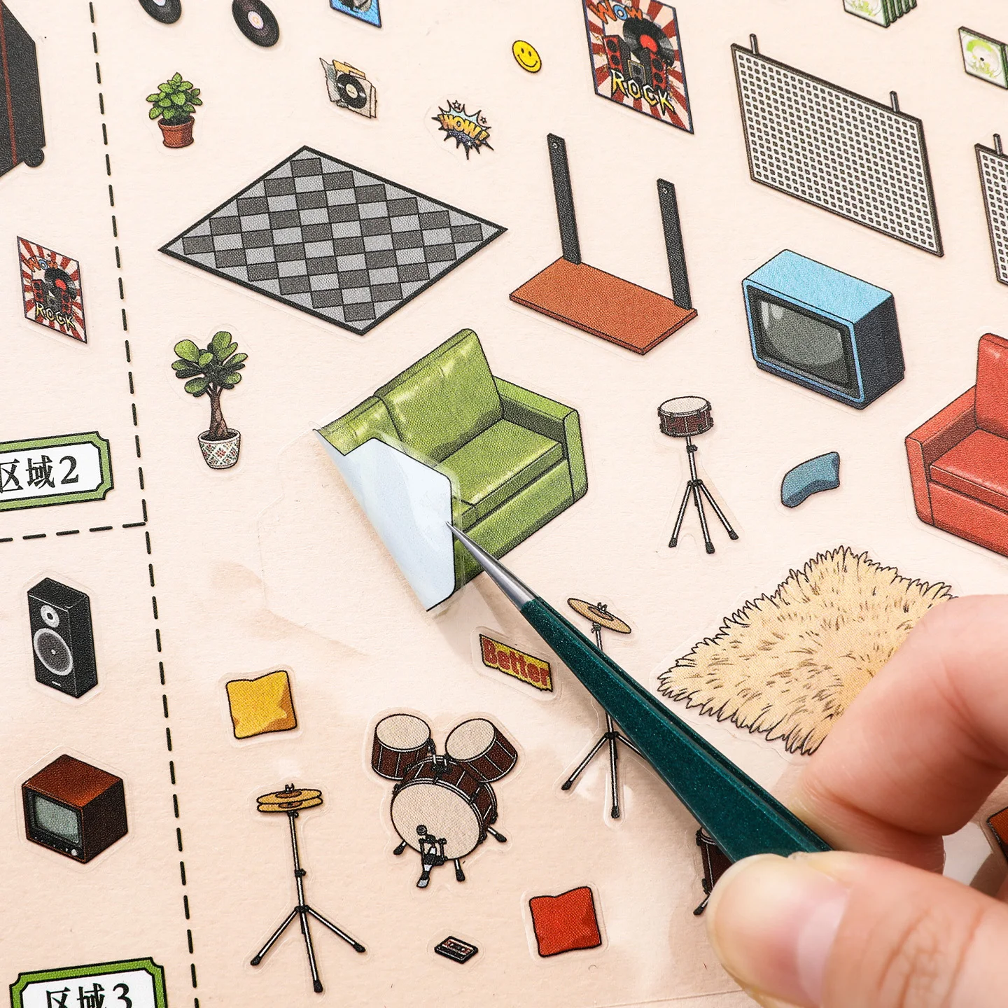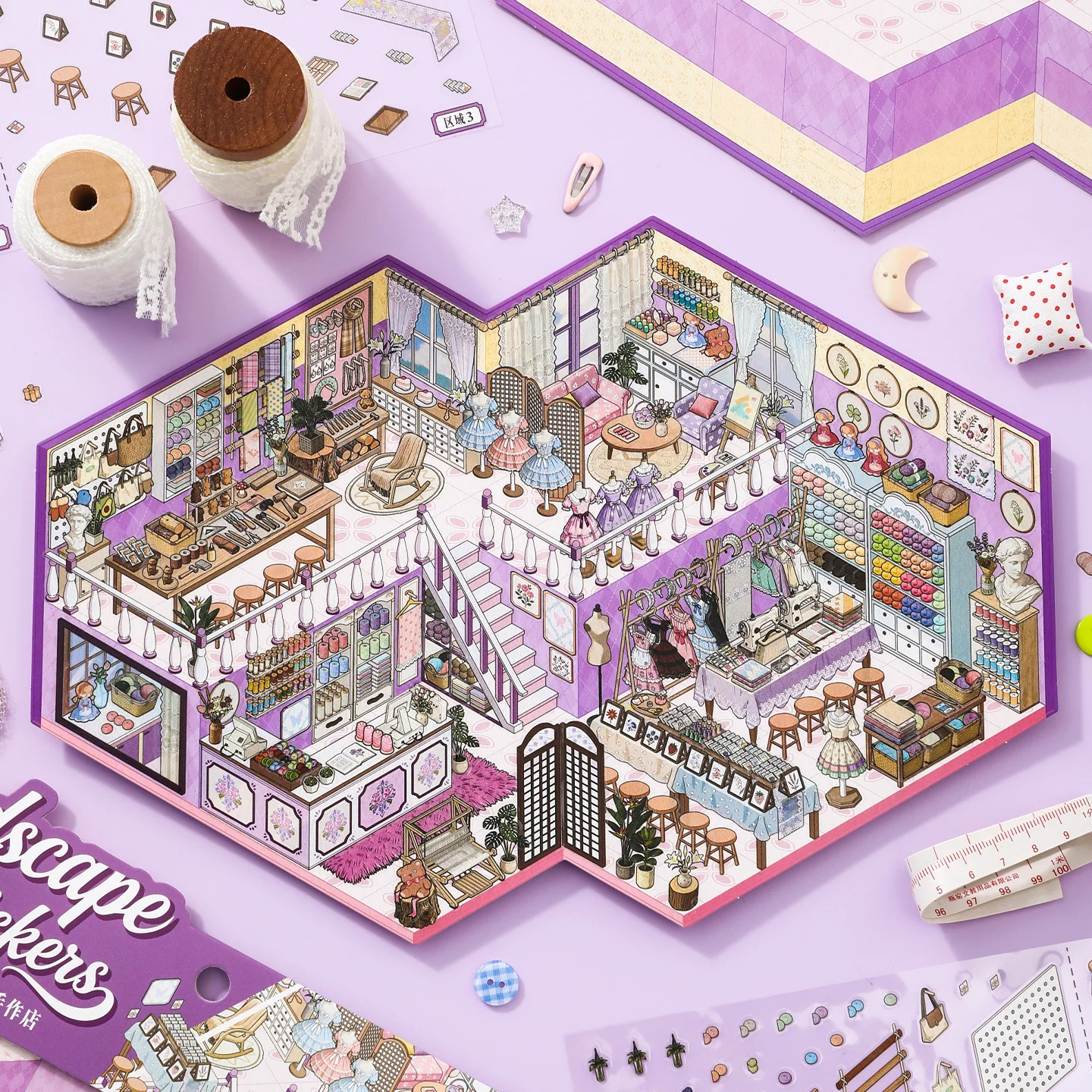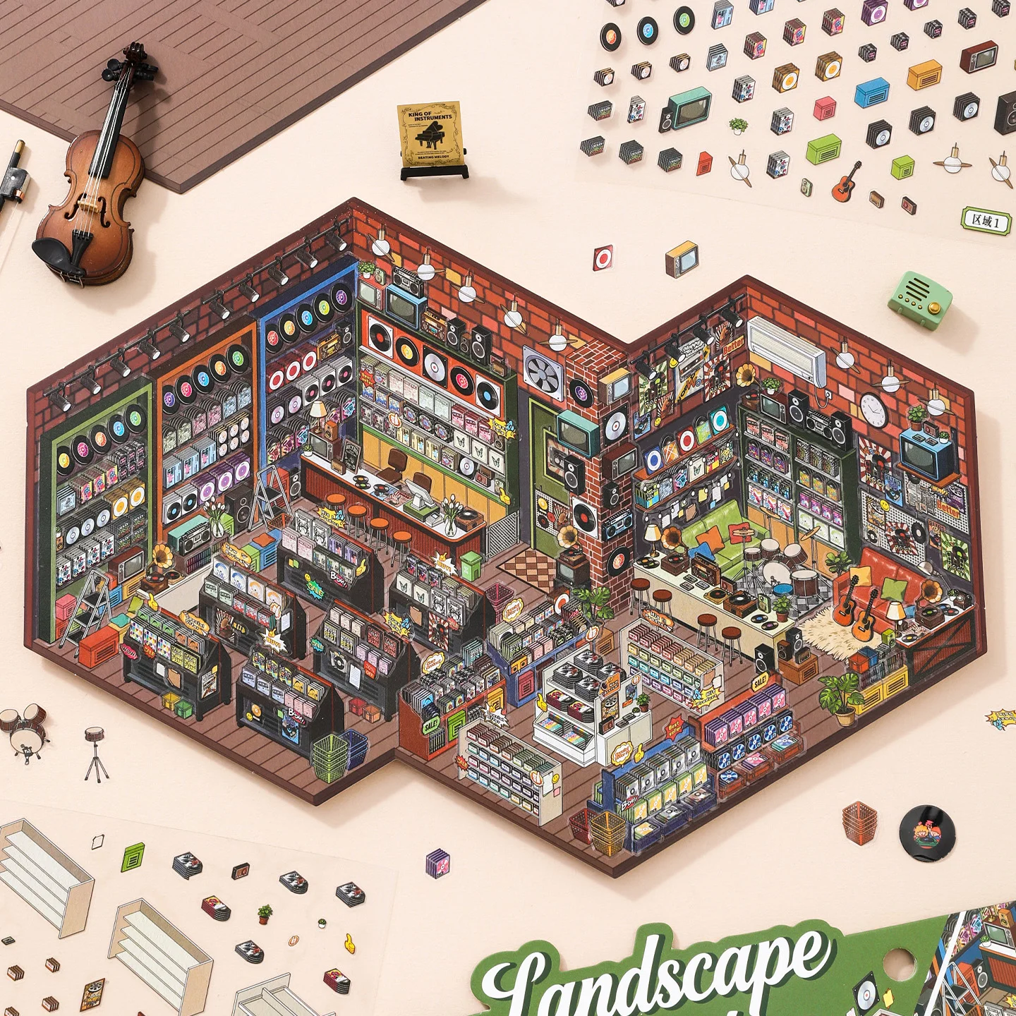 JIANQI Kawaii Store operator 3D Audiovisual store Landscape Sticker DIY Pocket Cabin Scene festival gift