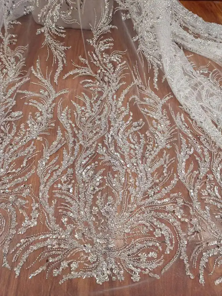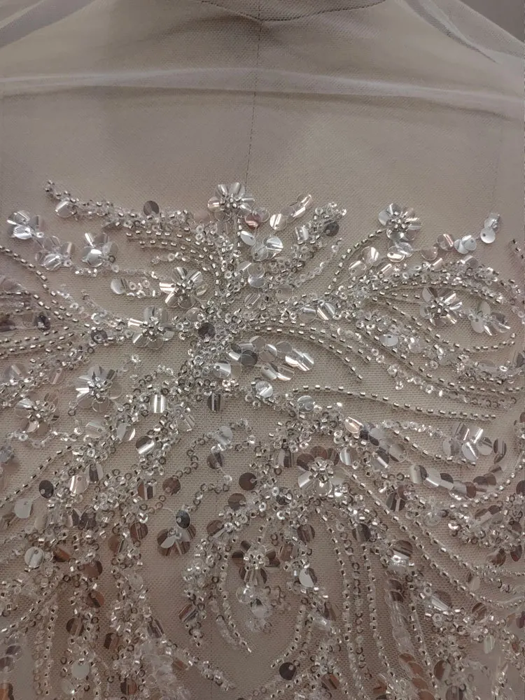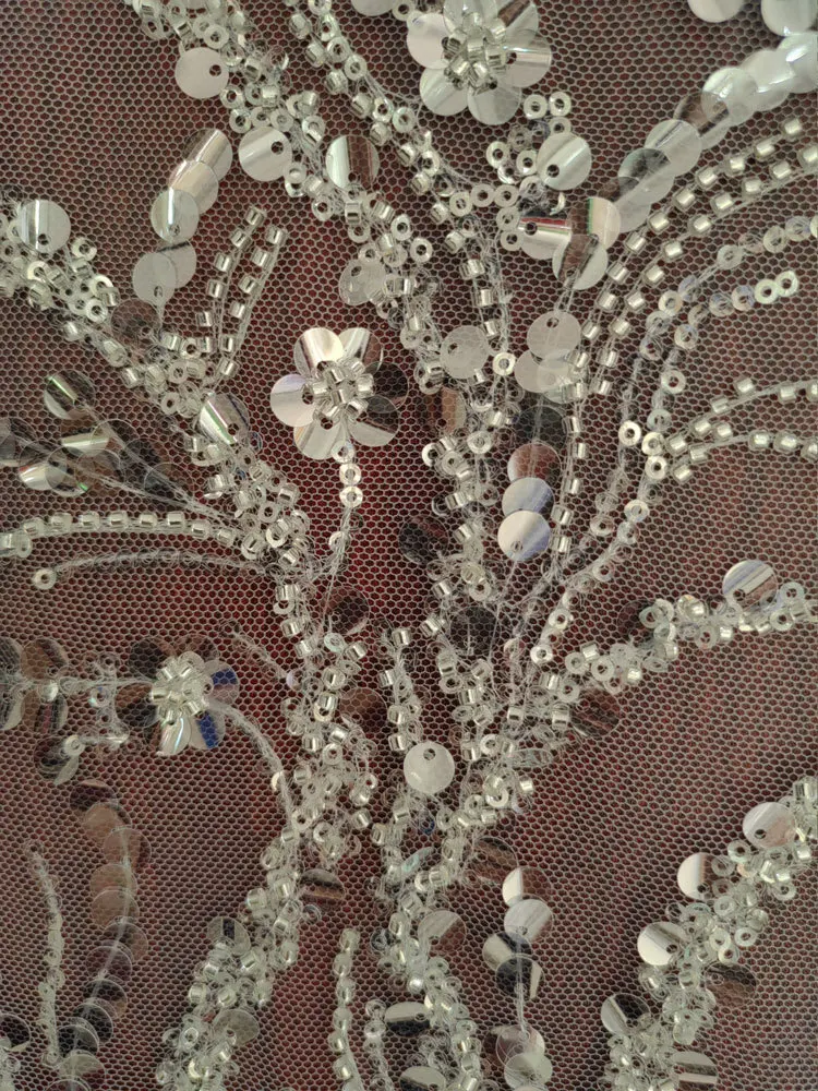 Silver Glitter Nail Embroidery Flower Style Lace Mesh Wedding Dress DIY Lace Clothing Accessories Decal
