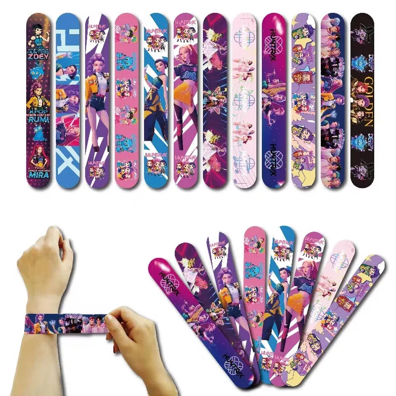 12pcs Kpop Demon Hunters Slap Bracelets Party Favors Snap Bracelets Birthday Party Gifts Decoration Supply Christmas Gifts