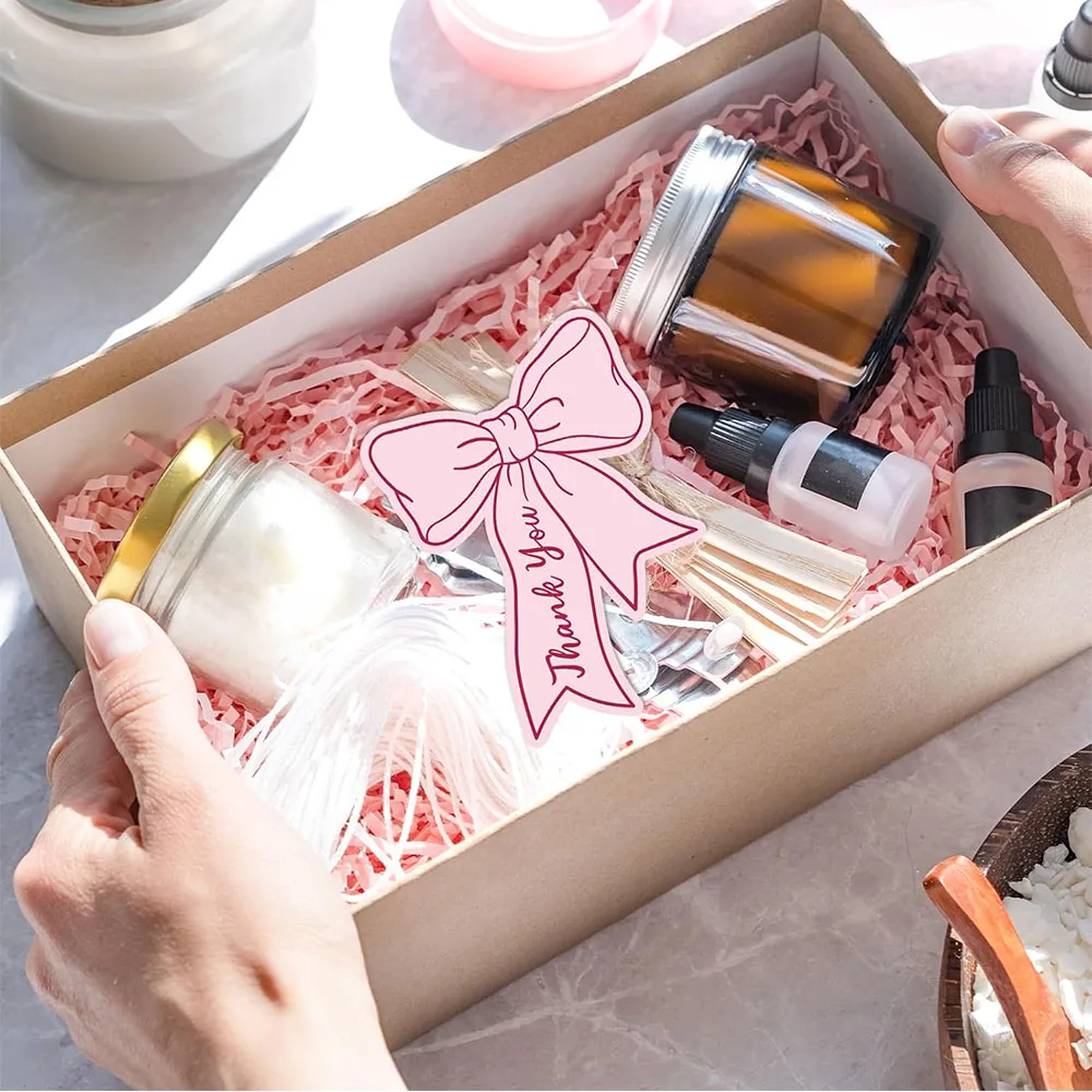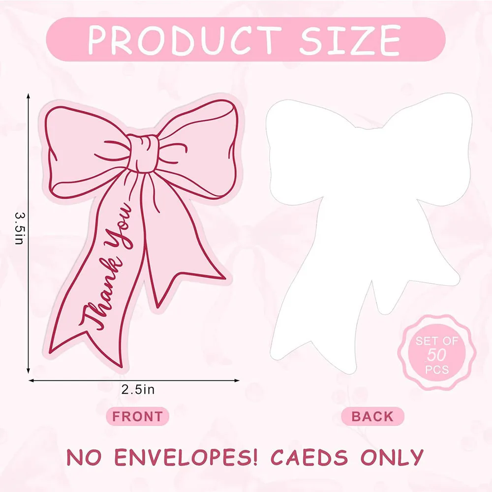 50Pcs Pink Bow Mini Thank You Cards 2.5x3.5 Inch Bowknot Small Business Notes for Stores Restaurants