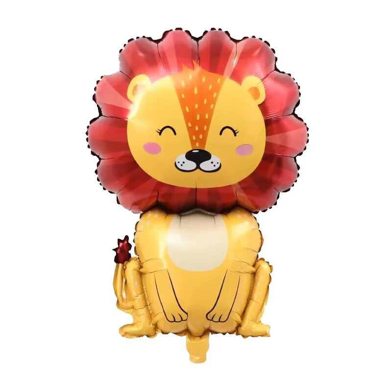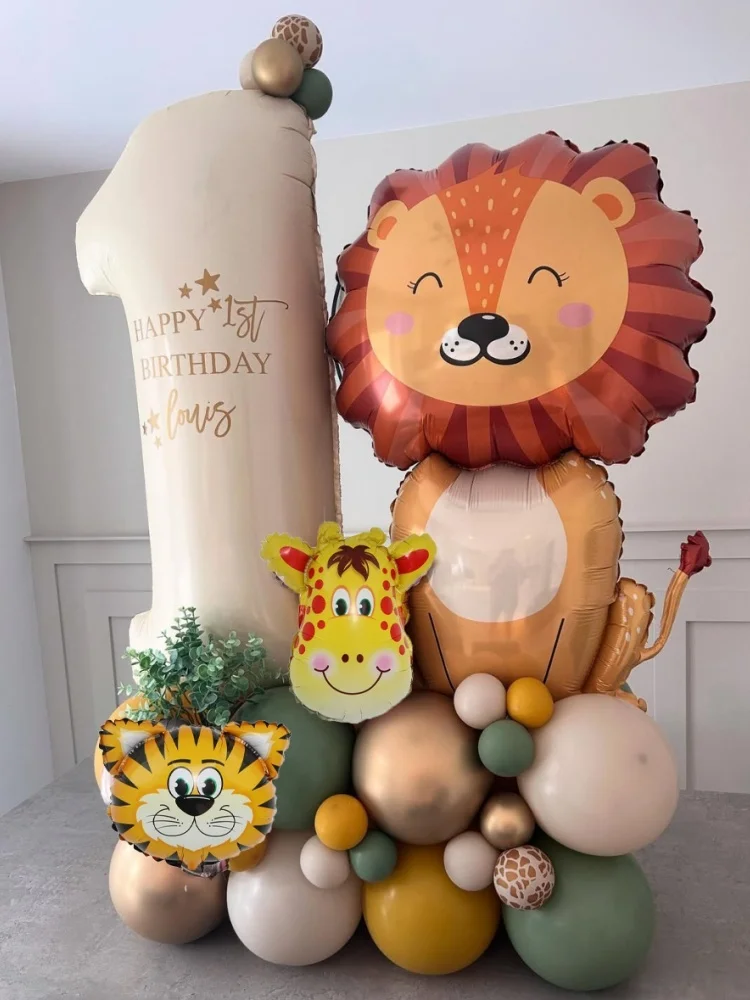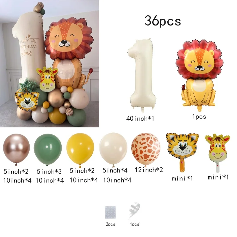 55-Piece Cartoon Lion Balloons with Butter-White Numbers, Birthday Balloon Set, Jungle Animal Theme Party Décor & Christening Su