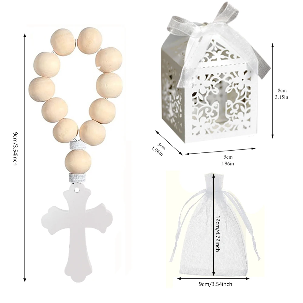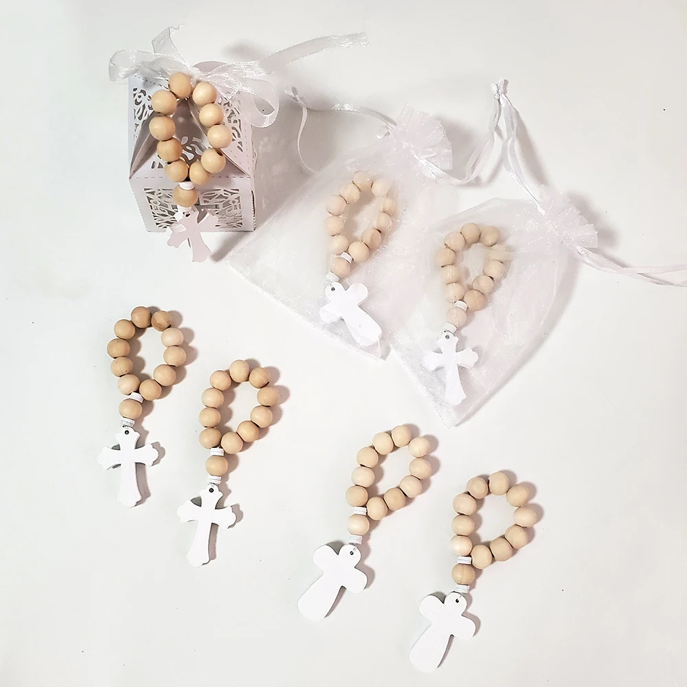 6-24PCS Wooden Rosary Wood Bulk Catholic with Crucifix Wooden Cross Pendant with White Mesh Bags Box for Baptism First Communion