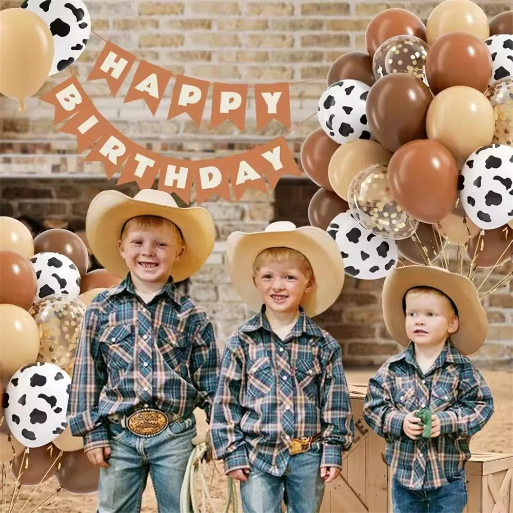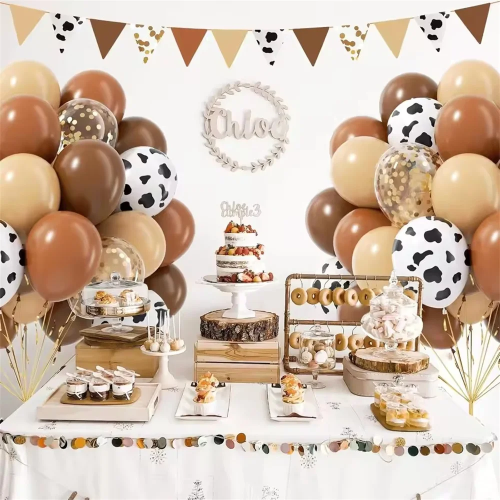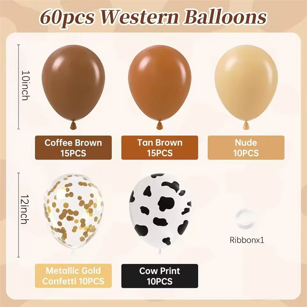 60Pcs/set Brown Nude Gold Confetti Cow Print Latex Cowboy Balloons for Farm Cowboy Western Birthday Party simple Decorations